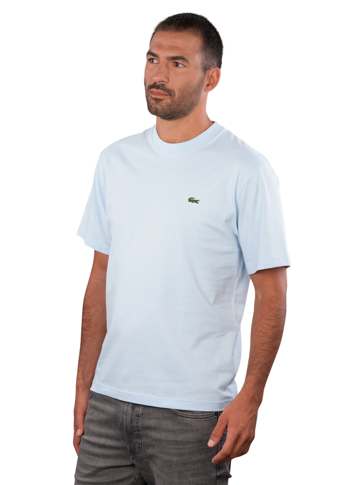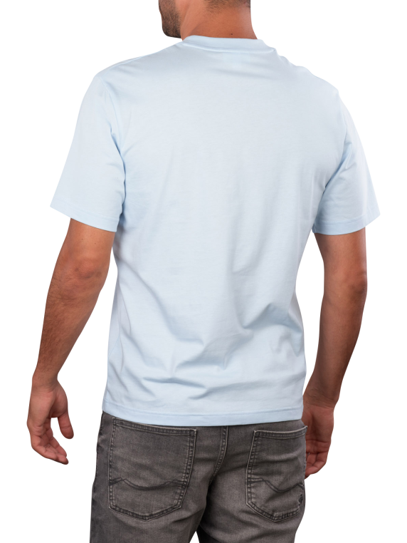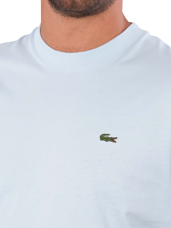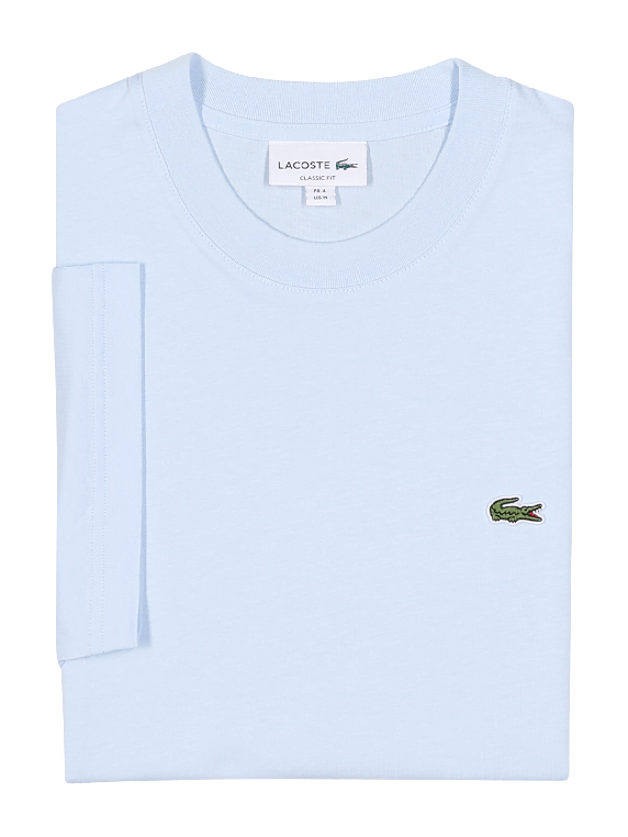 The Lacoste T-Shirt Classic Fit Rill in light blue features a round neckline and a comfortable fit for men. It is made of 100% cotton and is suitable for machine washing at 30°C. The simple design allows for versatile combinations, while the classic Lacoste style ensures timeless elegance. This T-shirt is a practical addition to any wardrobe.