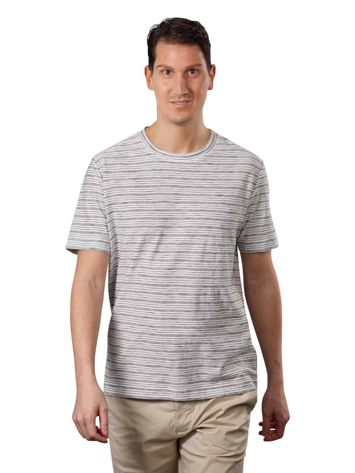 Tired of plain-coloured shirts and fancy a bit of summer variety in your wardrobe? Then this striped T-shirt is just the thing. It comes with short sleeves and a classic round neckline and impresses across the board with its discreetly visible brand logo. The shirt is made from pure, high-quality cotton without any harmful raw materials and is therefore very comfortable to wear against the skin.
