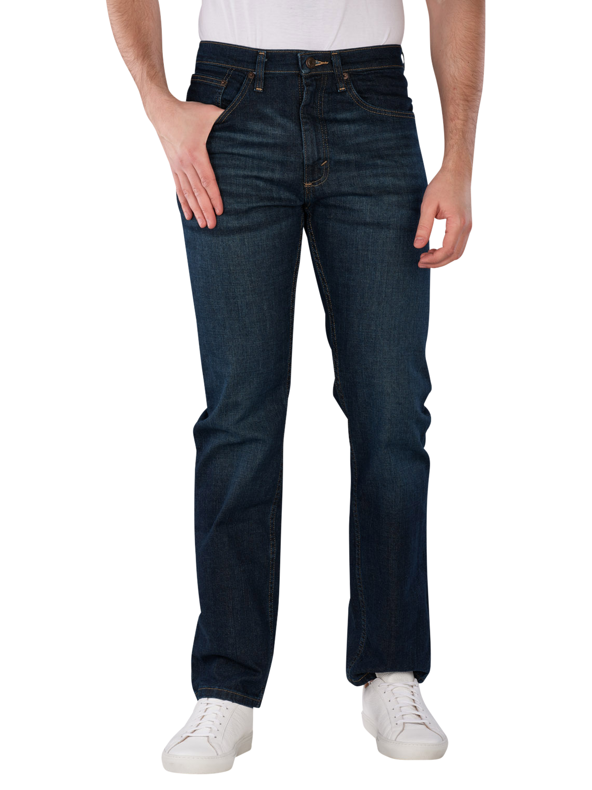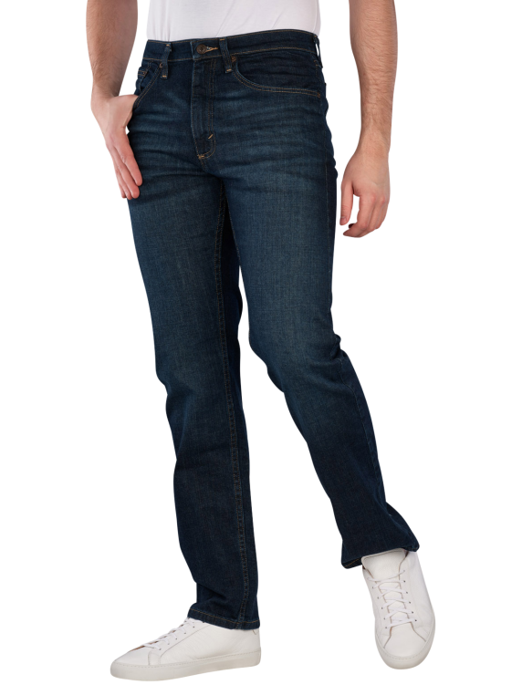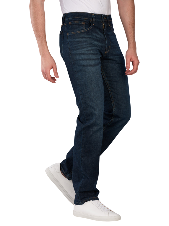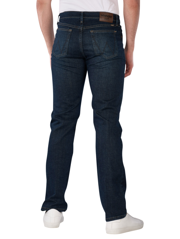 The Wrangler Texas Jeans Straight Fit Blackened Indigo offers a straight fit with a mid-rise waistband. It is in dark blue and features a practical zipper. With its stretch content, it provides freedom of movement and comfort. The jeans are suitable for a normal wash at 30°C and have a dark wash that is versatile to combine. Ideal for leisure and casual occasions.