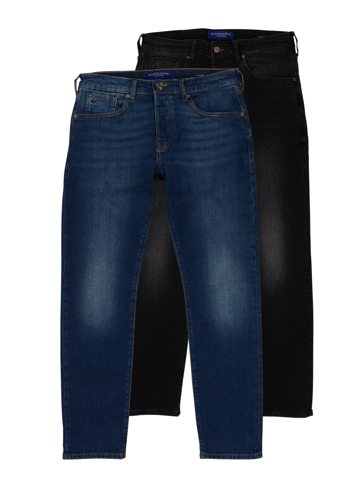 The Scotch & Soda Ralston slim fit 2-pack jeans for men offer stylish versatility in black and mid blue. With a narrow leg cut and mid-rise waist, they offer a contemporary fit. Made from 99% cotton and 1% elastane, the stretch content ensures everyday comfort. The five-pocket jeans feature a button placket, standard fabric thickness and are easy to care for on a 30 degree normal wash cycle.