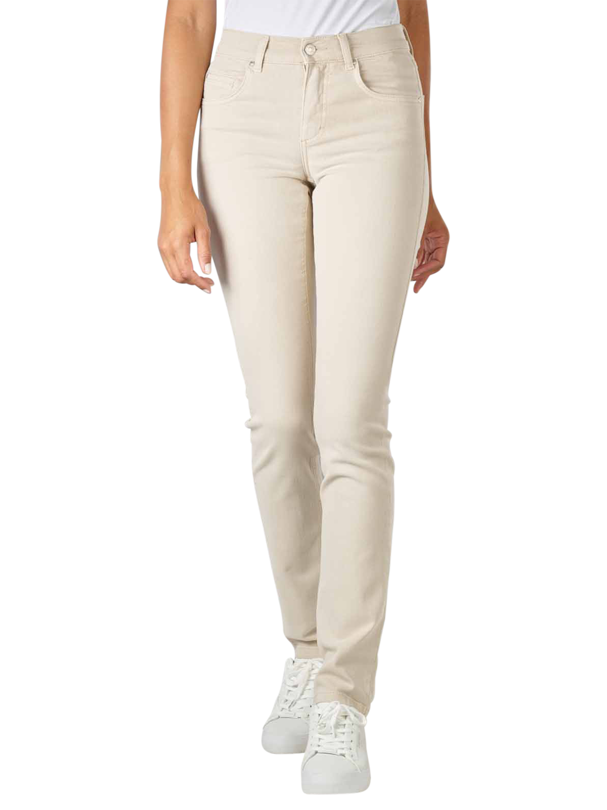 The Angels Cici jeans straight fit in the colour Nature Used inspires with an elastic cotton-Lyocell-demin, which gives it a comfortable fit and high wearing comfort. With their high waistband and straight, not too tight-fitting legs, the jeans also slightly accentuate the figure. Another advantage of the straight fit women's jeans is that they are easy to clean at 30 °C on a gentle cycle.