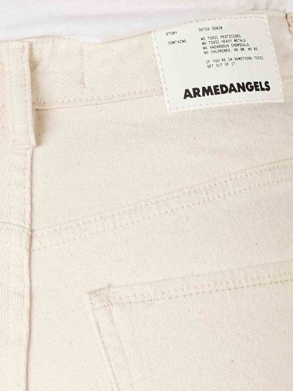 The Armedangels Lejaani Undyed Jeans Slim Fit is available in the Straightfit cut with Slimfit, Cropped, and Ankle details. Its leg opening and thighs are cut straight. It is made from high-quality organic cotton, consisting of 99% cotton and 1% elastane. The casual five-pocket pants in beige open and close with a zipper.