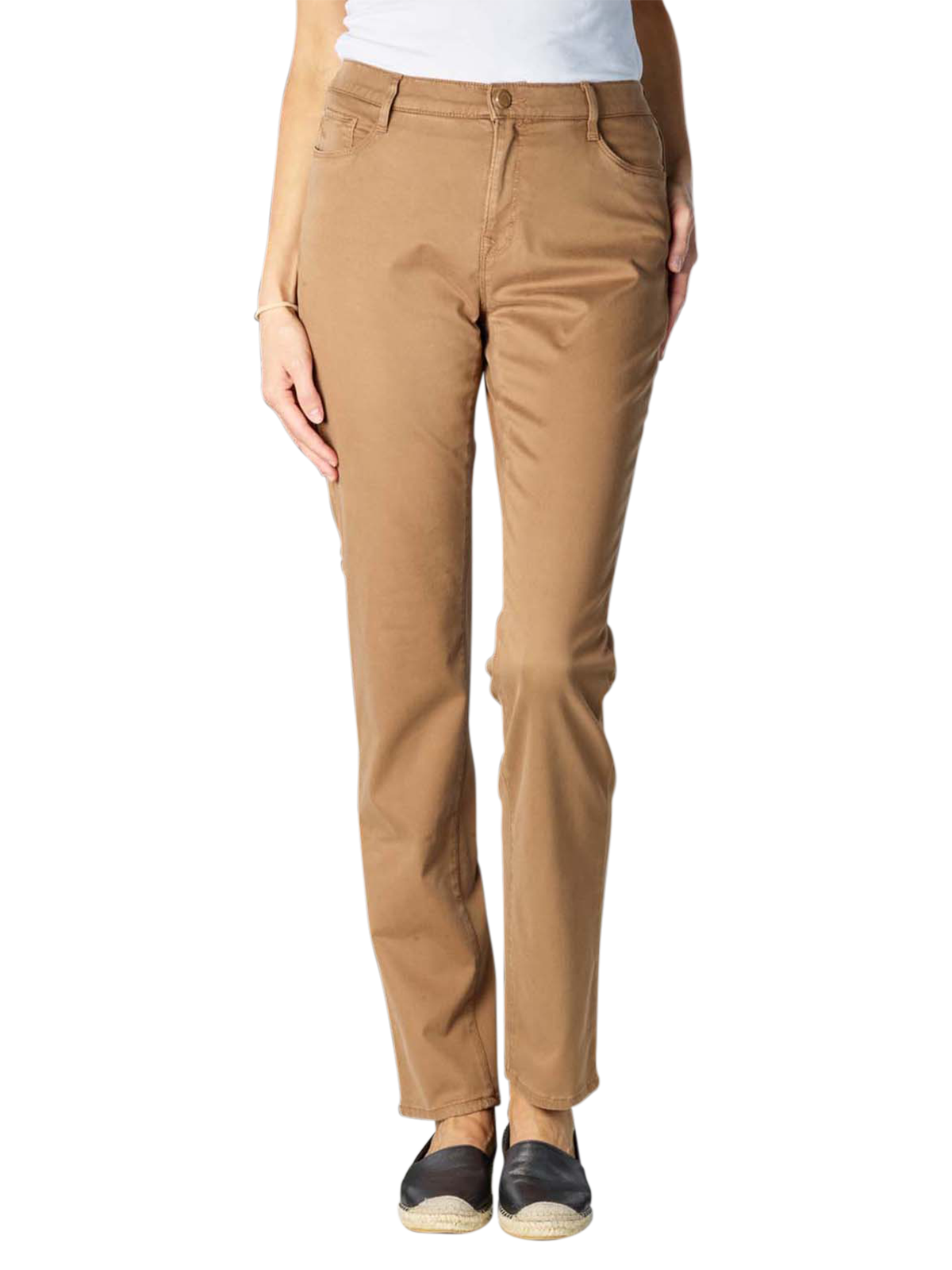 Brax Mary Jeans offer a flattering slim fit with a mid-rise waist. These ladies jeans have a Walnut finish which is teamed perfectly with a white shirt and trainers for a stylish causal look. The jeans are completed with the Brax metal logo on the rear pocket.