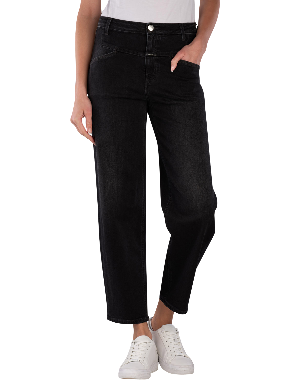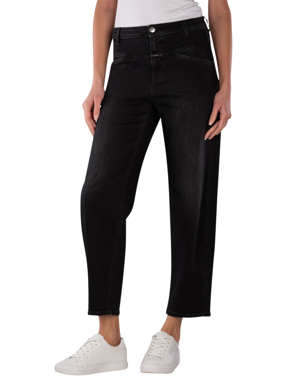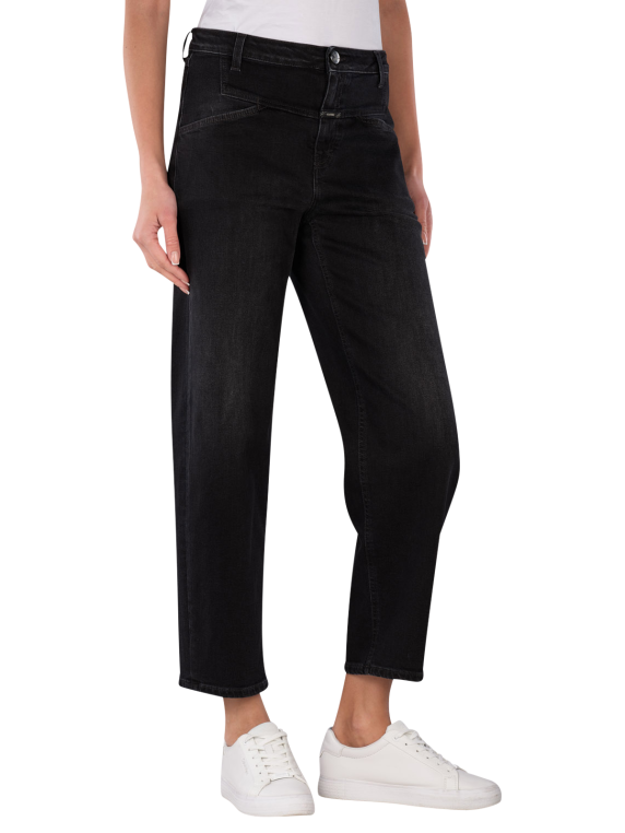 The Closed Stover-X Jeans Relaxed Fit in Dark Grey features a straight leg cut and a mid-rise waist. It is cut in a Barrel Fit and O-Shape, providing a comfortable fit. With a stretch content, the jeans adapt well to the body. The dark wash gives it a modern look. Easy to care for at 30°C in a normal wash cycle, it is a practical choice for everyday wear.