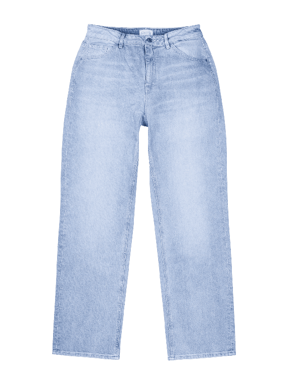 The Dawn Denim Morning Jeans offers a straight fit with a mid-rise waist and is in a light blue shade. It features a classic five-pocket style and a zipper. The stretch content provides additional comfort and freedom of movement. These jeans are suitable for various leisure activities and can be combined in versatile ways. Care instructions: gentle wash at 30°C, do not bleach.