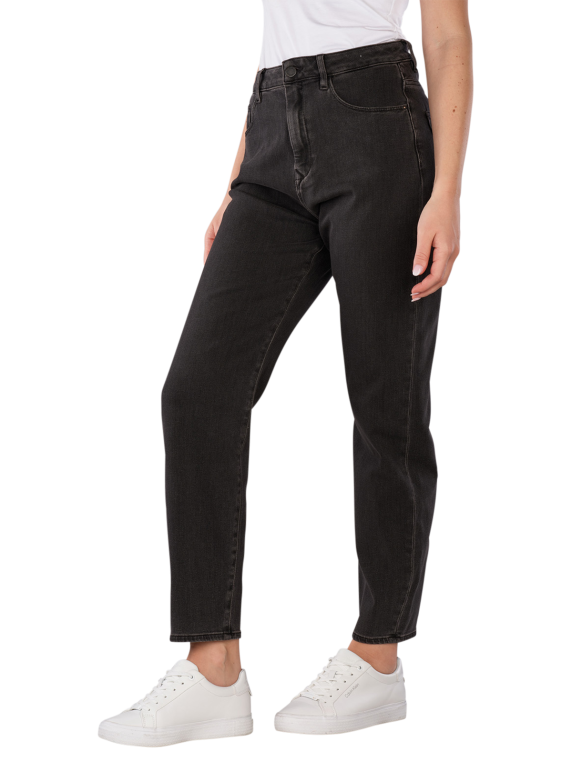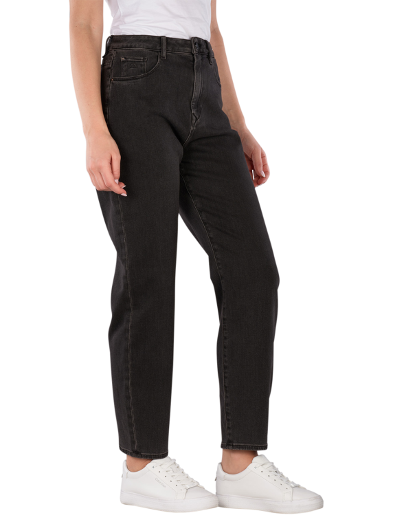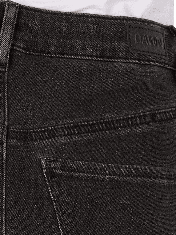 The Dawn Denim Stardust Jeans O-Shape in black features a tight leg cut and a high waist. It is cut in a barrel fit and O-shape/mom fit, ideal for fashionable accents. The five-pocket style and zipper provide functionality. With a stretch content, it adapts to the body shape and offers comfort. Easy to care for at 30°C on a gentle wash cycle, it is a practical choice for everyday wear.