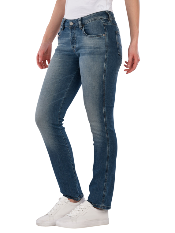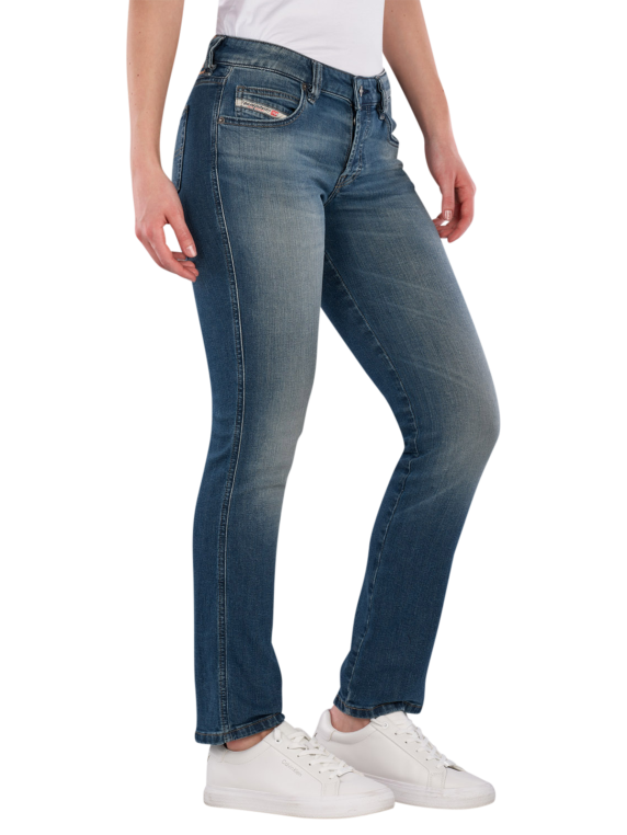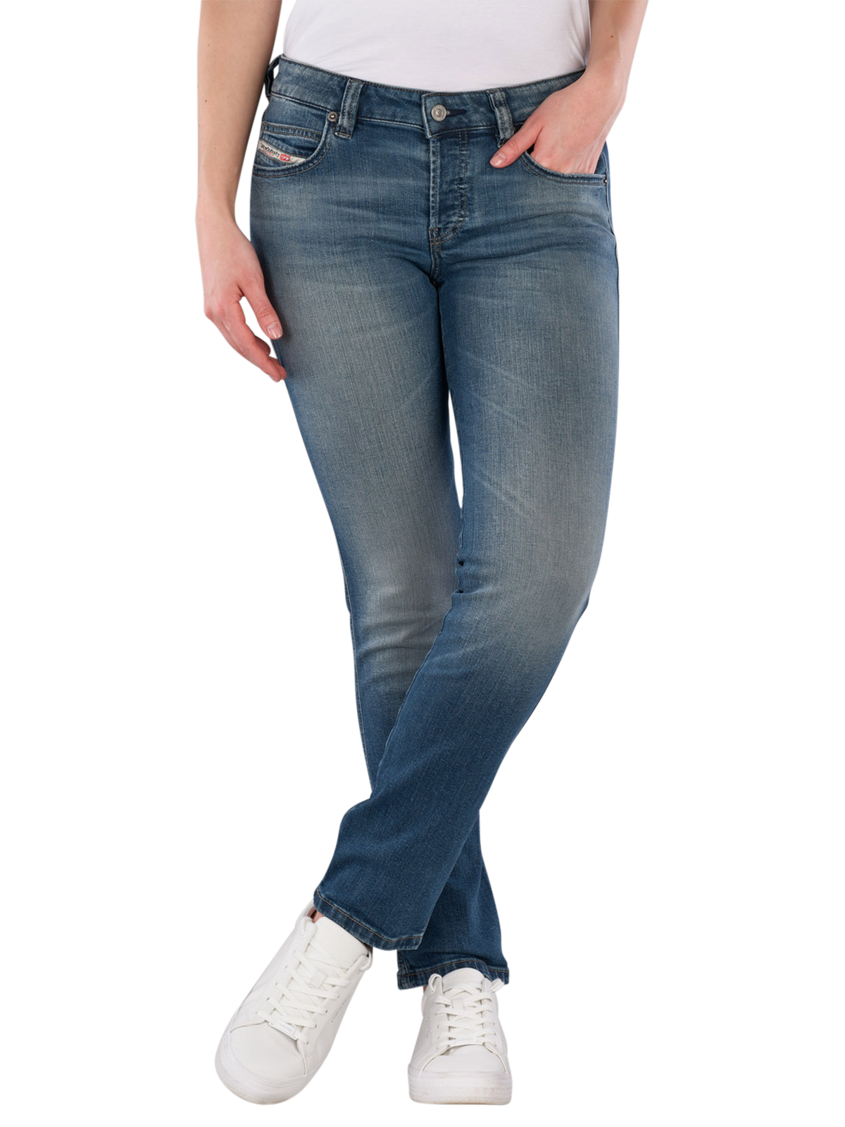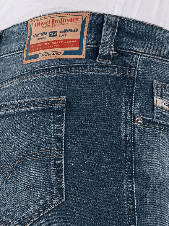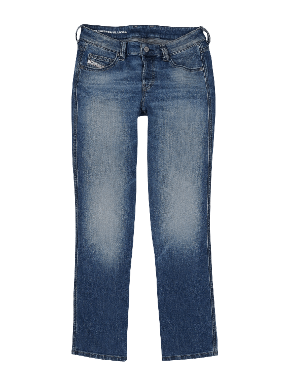The Diesel 1992 D-Jiann Jeans features a straight leg and a low waistband, ideal for a modern look. The medium wash provides a casual style, while the stretch content offers additional comfort. These five-pocket jeans are versatile and suitable for various occasions. The zipper allows for easy on and off. Care instructions: gentle wash at 30°C, do not bleach.