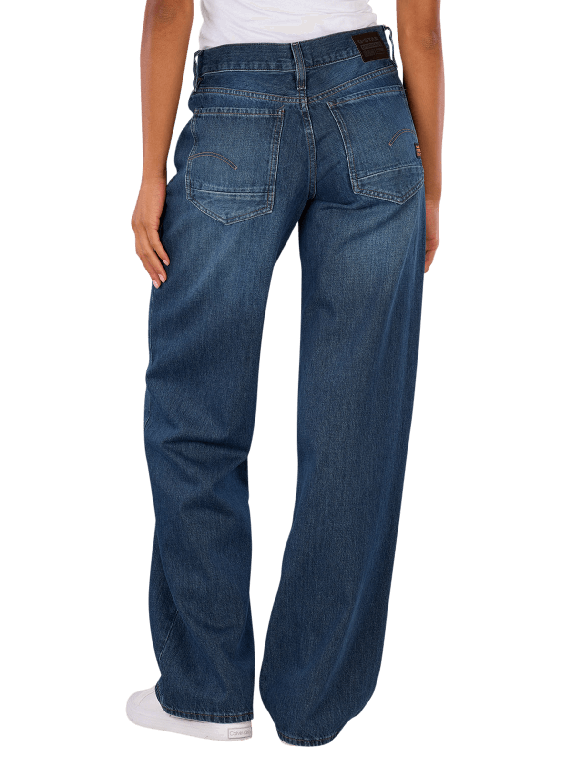 The G-Star Judee Jeans Loose Fit Worn In Indigo Veil offers a straight and wide fit with a low to mid-rise waist. The dark wash and classic five-pocket style make it versatile for pairing. Made from 100% cotton, it is easy to care for and suitable for normal wash at 30°C. Ideal for casual occasions or everyday wear, it combines comfort and style.