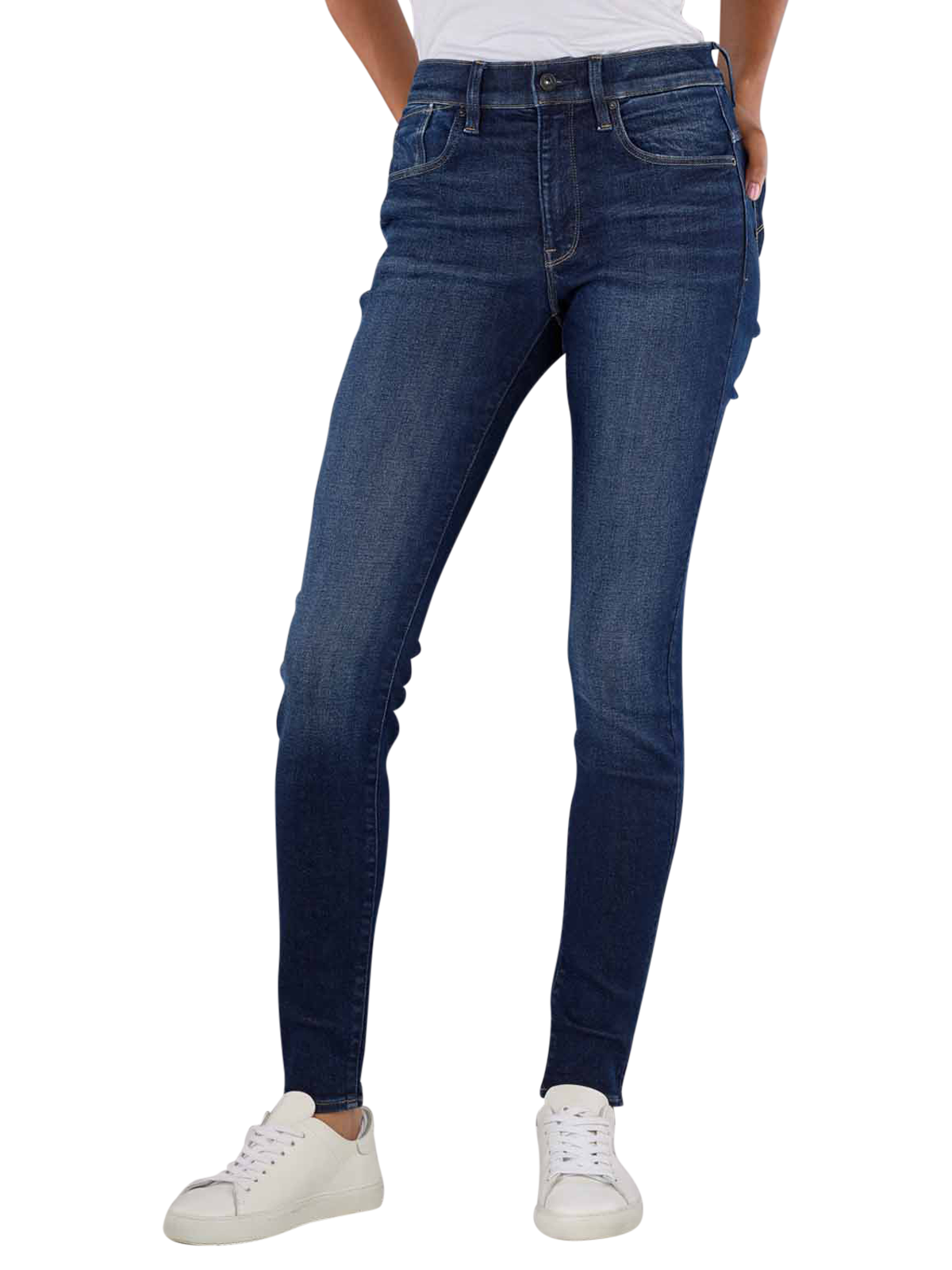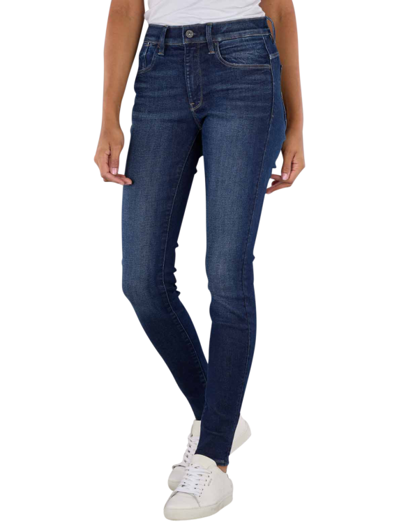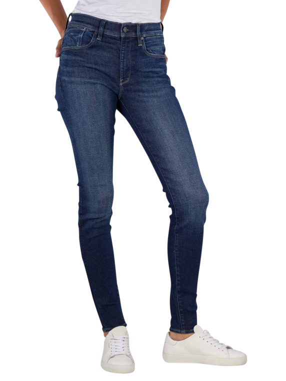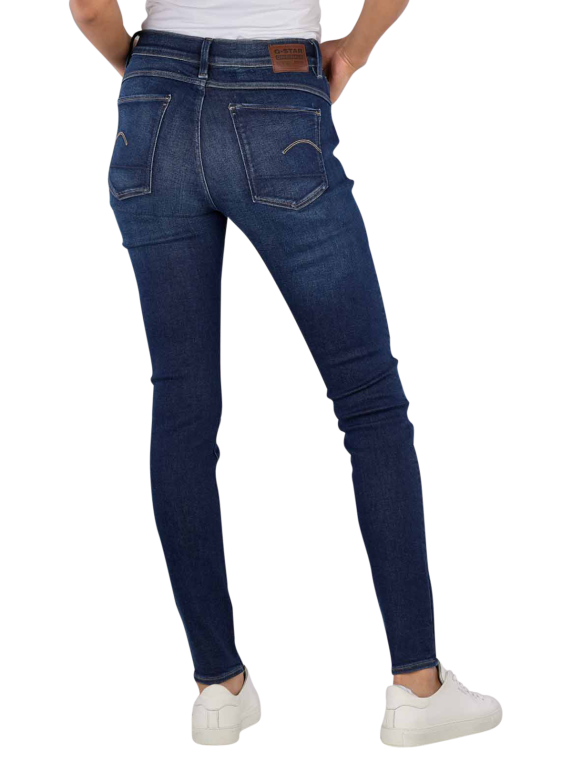 The G-Star Lhana jeans in dark blue have a skinny fit and a mid-rise waist. The five-pocket jeans have a narrow leg cut and are made from a fabric blend with stretch. With a zip fastening and dark wash, they impress with their comfort and style. Easy-care at 30°C on a normal wash cycle, the trousers are made from 74% cotton, 19% lyocell, 5% polyester and 2% elastane and are ideal for women.