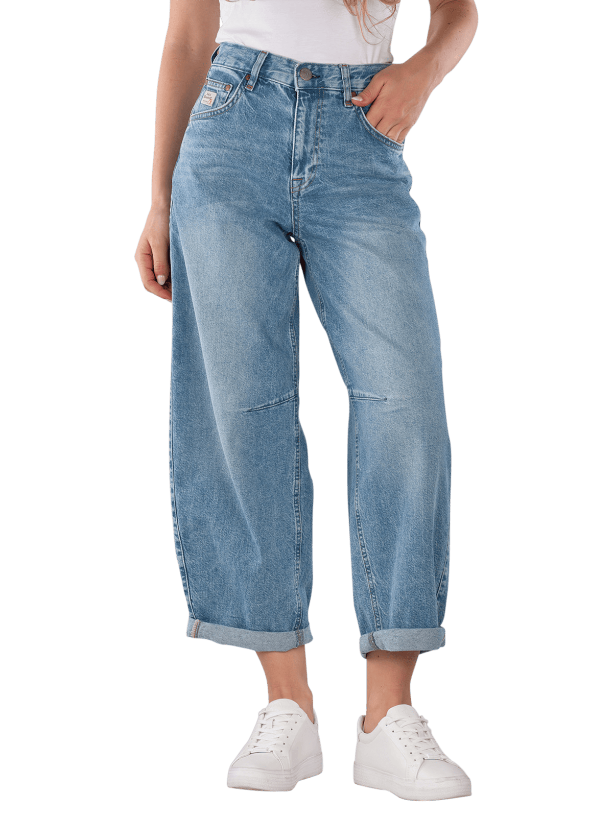 The Herrlicher Barrow Jeans in Barrel Fit features a straight leg opening and a high waist. The light blue wash provides a fresh look. Equipped with a stretch content, it offers freedom of movement and comfort. The five-pocket design allows for practical storage. These jeans are suitable for a normal wash at 30°C and should not be bleached. It combines style with functionality for modern everyday life.