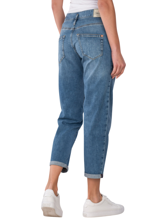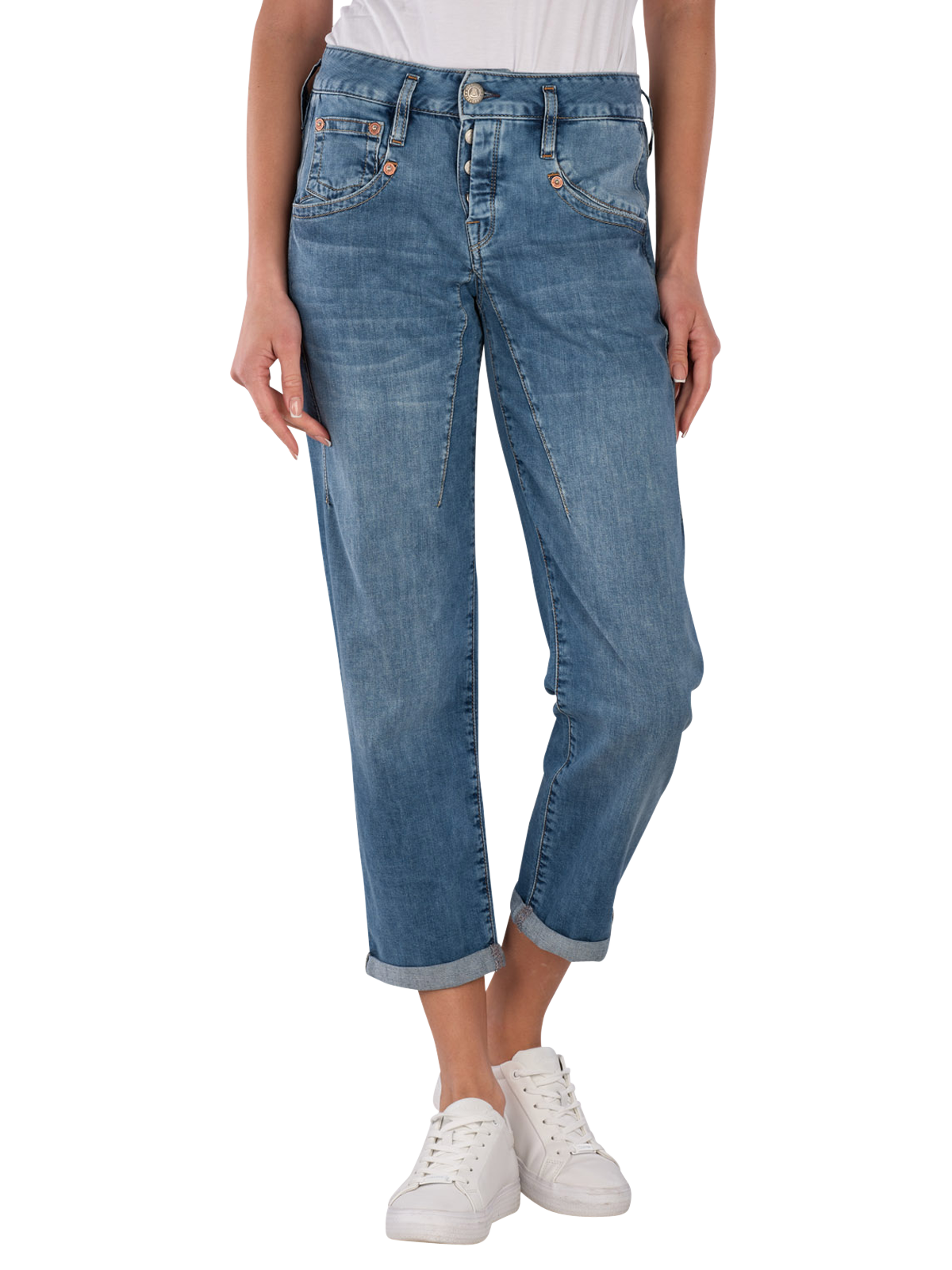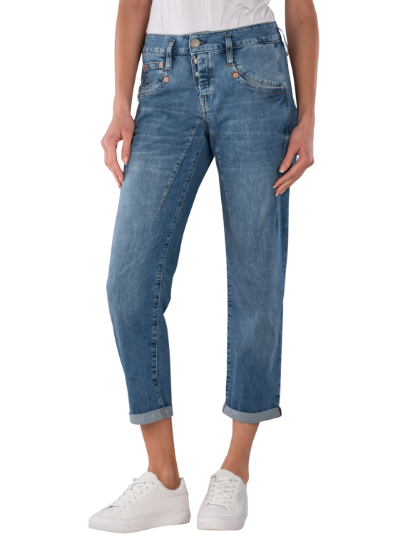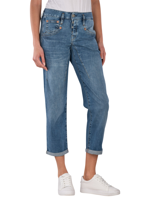 The Herrlicher Shyra Tap Jeans Boyfriend in light blue offers a relaxed fit with a mid-rise waistband and a slim to straight leg cut. It features a classic button fly closure and five pockets for practical storage. The stretch content ensures freedom of movement and comfort. These jeans are suitable for various leisure activities and can be combined in many ways.