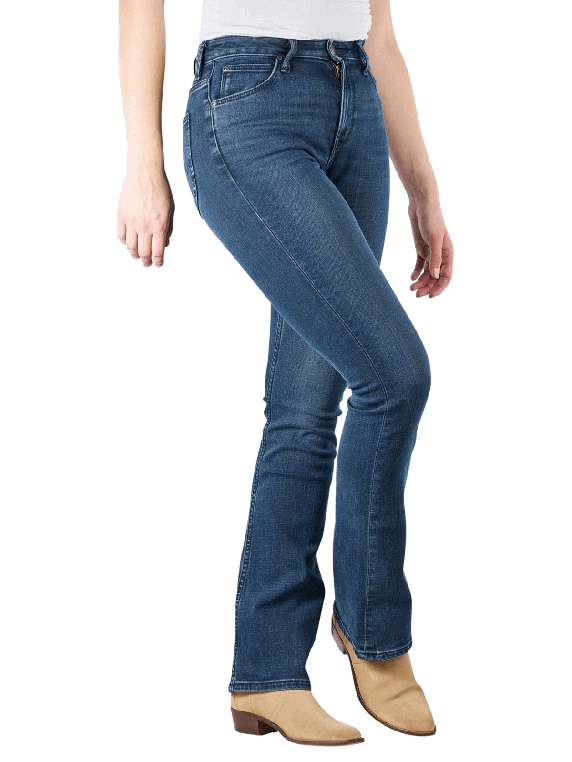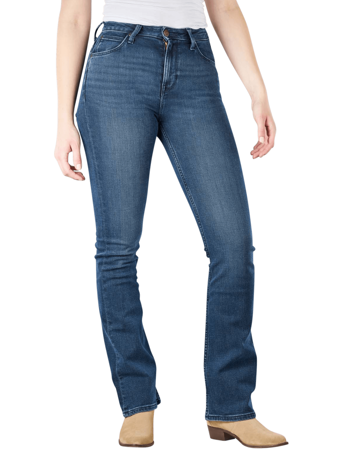 The Breese Boot Jeans from Lee are a classic and thoroughly elegant pair of bootcut jeans. They have a high waistband and run very close to the thigh. The five-pocket jeans have a Lee label patch on the back waistband. There is another discreet patch on the back right pocket. The trousers, which are available in various shades of blue and black, are made of 84% cotton, 14% polyester and 2% elastane. The latter components are necessary for the stretch of the trousers.
