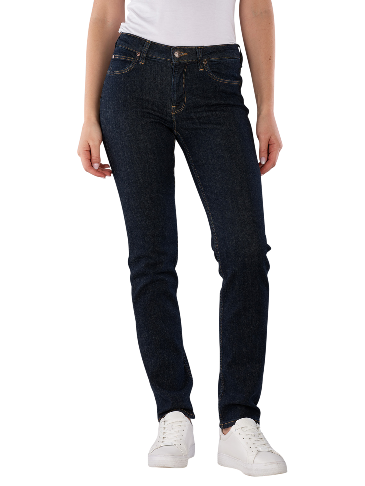 The Lee Elly Jeans Slim Fit in Dark Blue features a tight leg cut and a mid-rise waist. It has a practical zipper and a classic five-pocket design. The stretch content ensures freedom of movement and comfort. These jeans are suitable for various occasions and can be combined in many ways. Care instructions: gentle wash at 30°C, do not bleach.