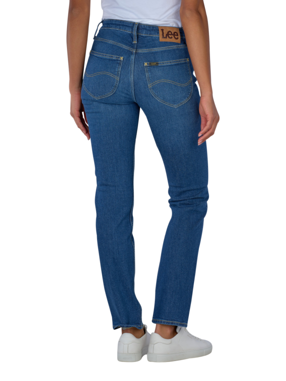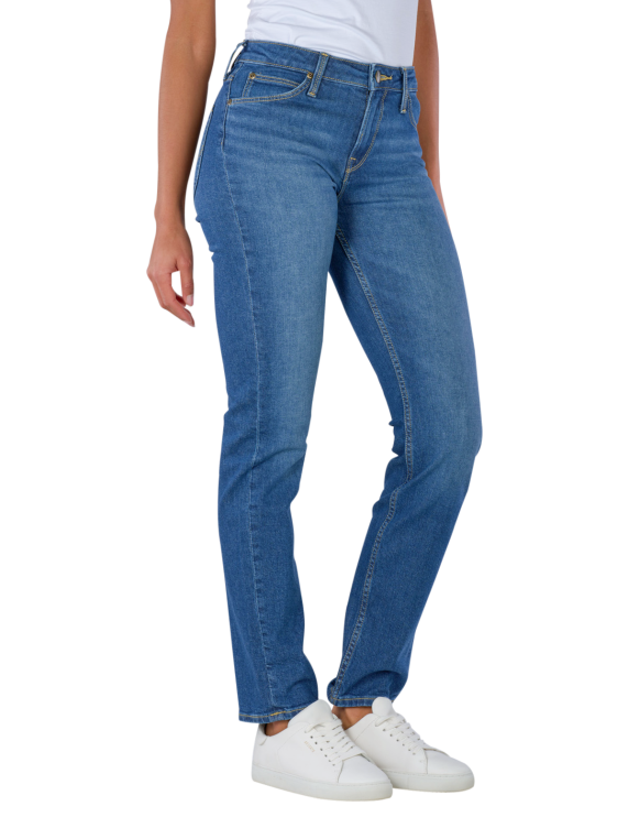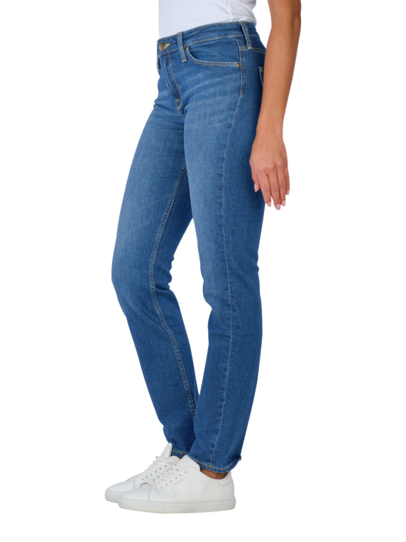 The Lee Elly jeans for women offer an elegant slim fit with a mid-blue colour and a light wash. These five-pocket trousers are characterised by their mid-rise waist and narrow leg cut. Made from 98% cotton and 2% elastane, they combine standard thickness with stretch for optimum comfort. The zip fastening makes them easy to put on. Care instructions include gentle cycle at 30°C and no bleaching.