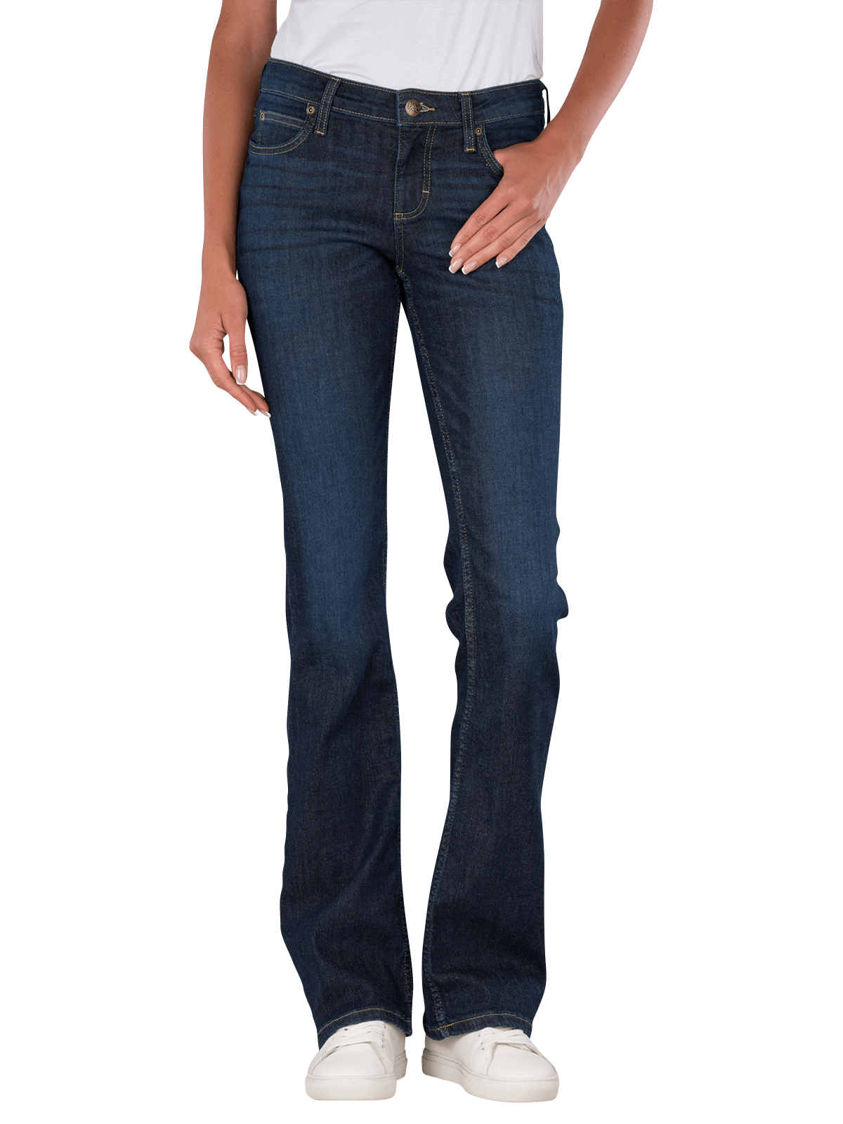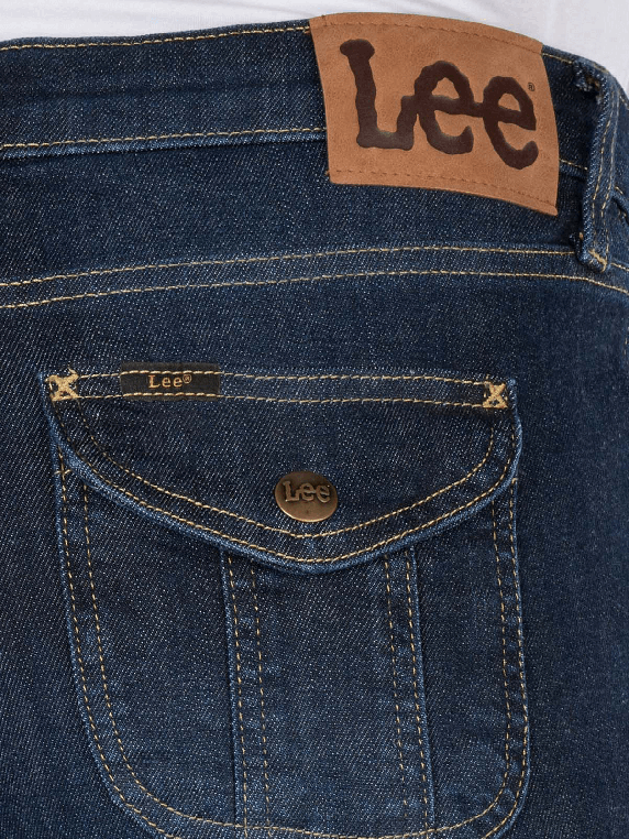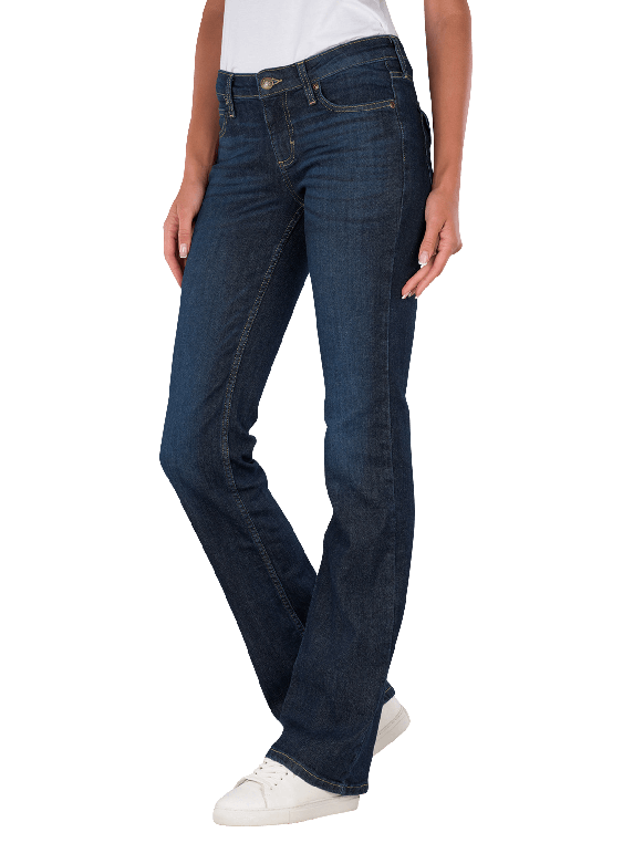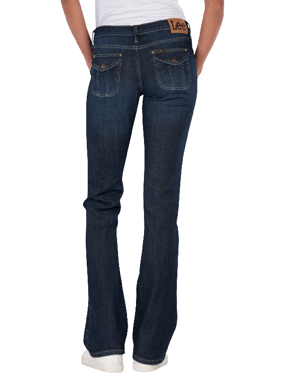 The Lee Jessica Jeans Bootcut Flap Pocket features a straight leg cut and a mid-rise waist. It is in dark blue and has a five-pocket construction. The zipper ensures a secure fit. With its stretch content, it adapts to the body shape and offers comfort. The jeans are suitable for a gentle wash at 30°C and offer a dark wash that is versatile to combine.