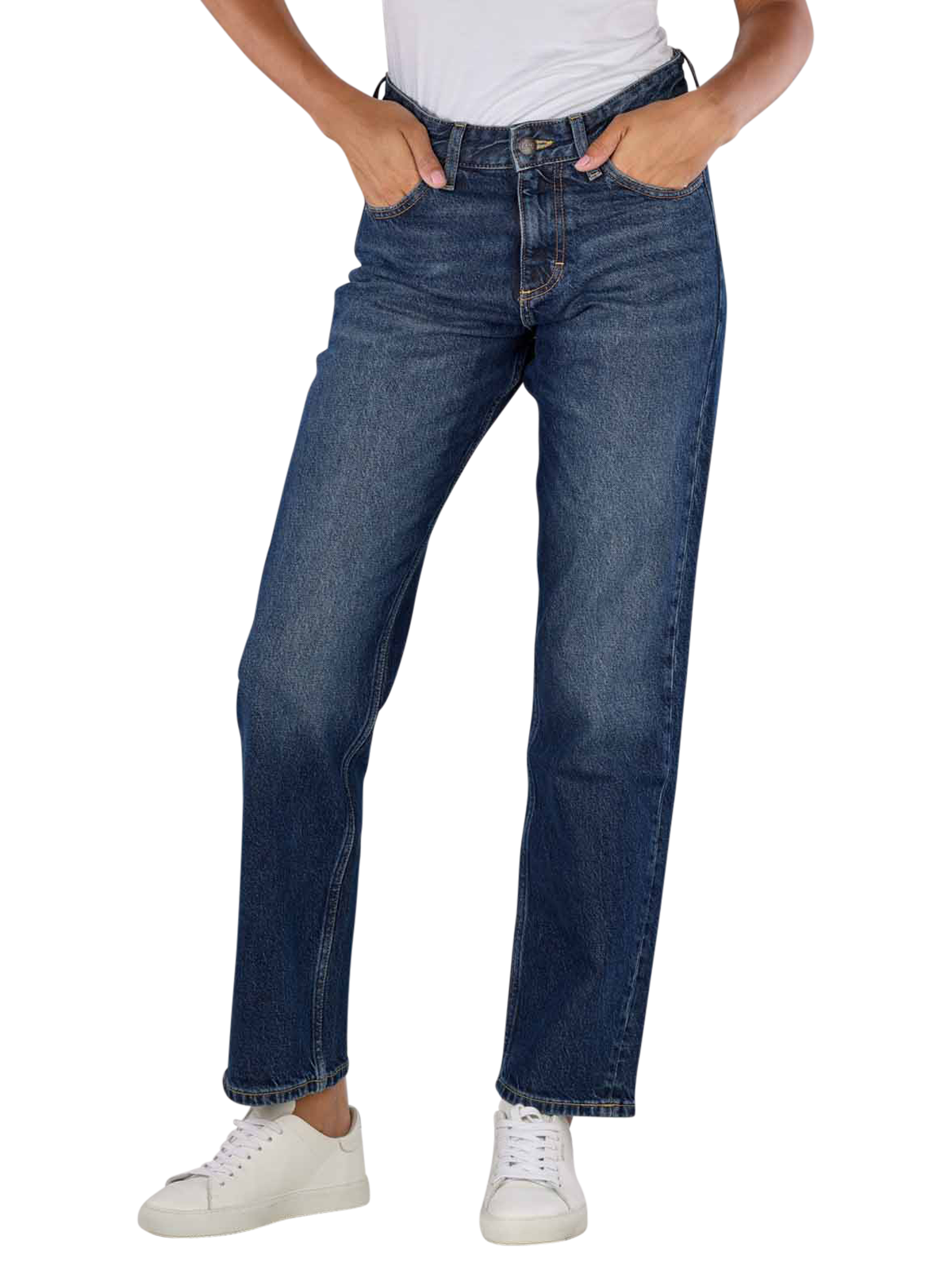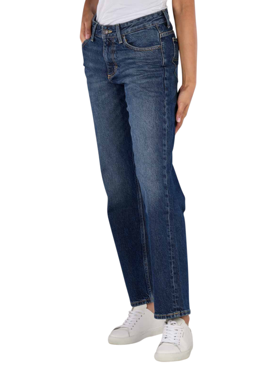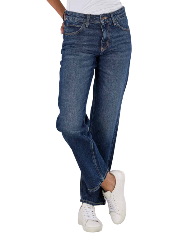 The Lee Rider Classic Straight Fit Hyper Dark jeans for women have a high waist and a straight leg. In a medium blue colour and designed as a relaxed fit, they are made from a stretchy fabric with a standard thickness. These five-pocket jeans with zip fastening have a medium wash. They are made from 67% cotton, 32% lyocell and 1% elastane. Gentle wash cycle at 30°C, do not bleach.