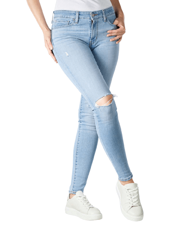 The holes in the Levi's 711 Skinny Fit jeans give them a youthful style.style. The jeans in the Lapis Stop colour are made from a blend of.viscose, polyester, spandex and cotton. Because of the thin fabricthe trousers are also suitable for hot summer days. The skinny fit jeans' narrow leg cut highlights the wearer's legs.