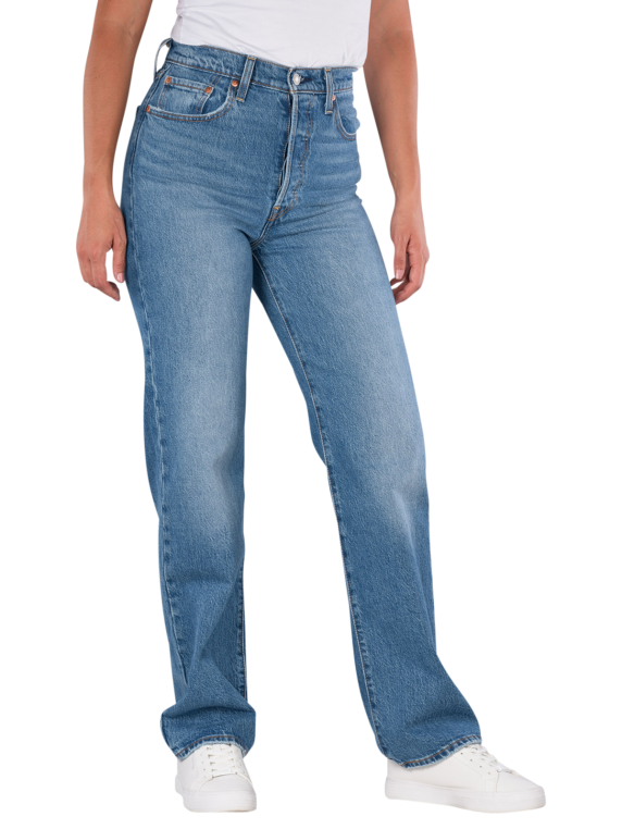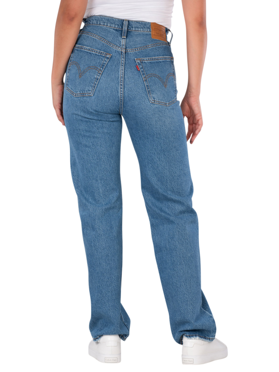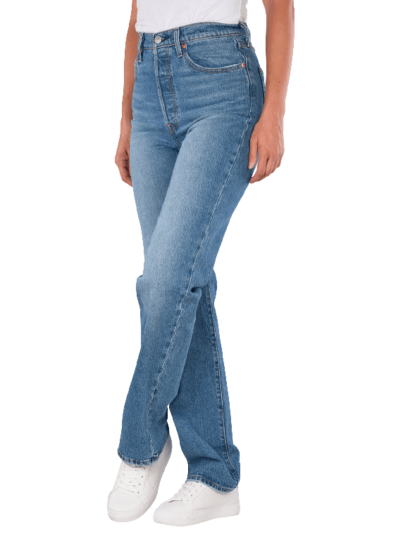 The Levi's Premium Ribcage Jeans features a straight leg cut and a high waist for a comfortable fit. The light blue wash gives the jeans a fresh look. With a stretch content, it allows for freedom of movement. The five-pocket construction provides ample storage space. These jeans are easy to care for and can be washed at 30°C, making them a practical choice for everyday wear.