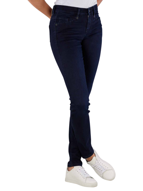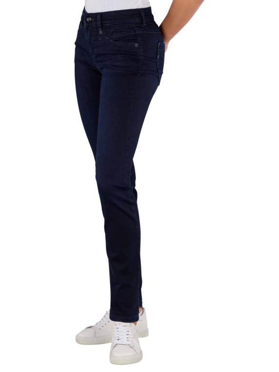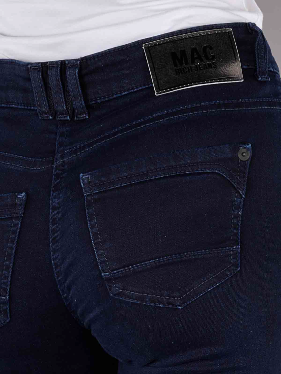 The Mac Rich jeans in Slim Fit Dark Blue are perfect for women. With a slim fit and mid-rise waist, they offer comfort and style. Made from a stretchy fabric mix (70% cotton, 17% polyester, 11% modal, 2% elastane), they have a dark wash and a zip fly. Easy to care for on a gentle wash cycle at 30°C. Supports the Better Cotton Initiative (BCI) for more sustainable cotton.