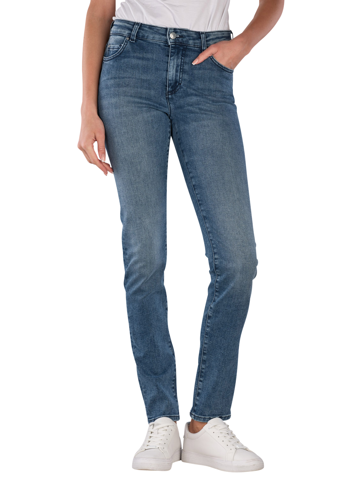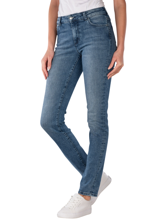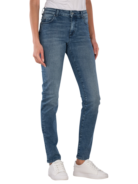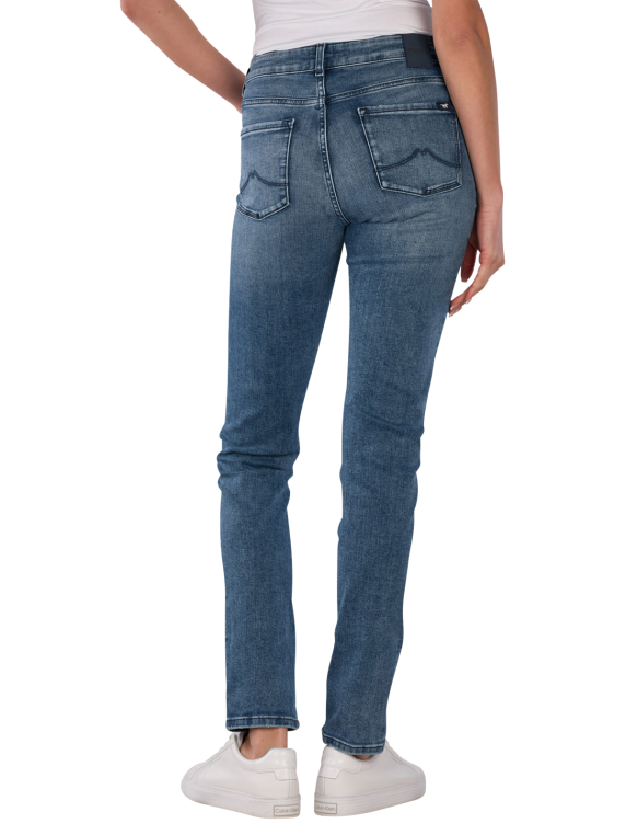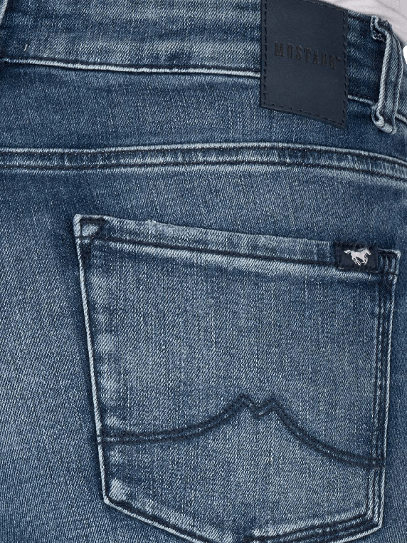 The Mustang Crosby Jeans Slim Straight Fit Blue features a mid-rise waist and a slim to straight leg cut, equipped with a zipper and five pockets, while the stretch content provides freedom of movement, and the medium wash gives a casual look, making these jeans suitable for various leisure activities and versatile to combine.
