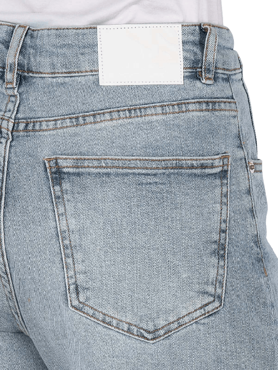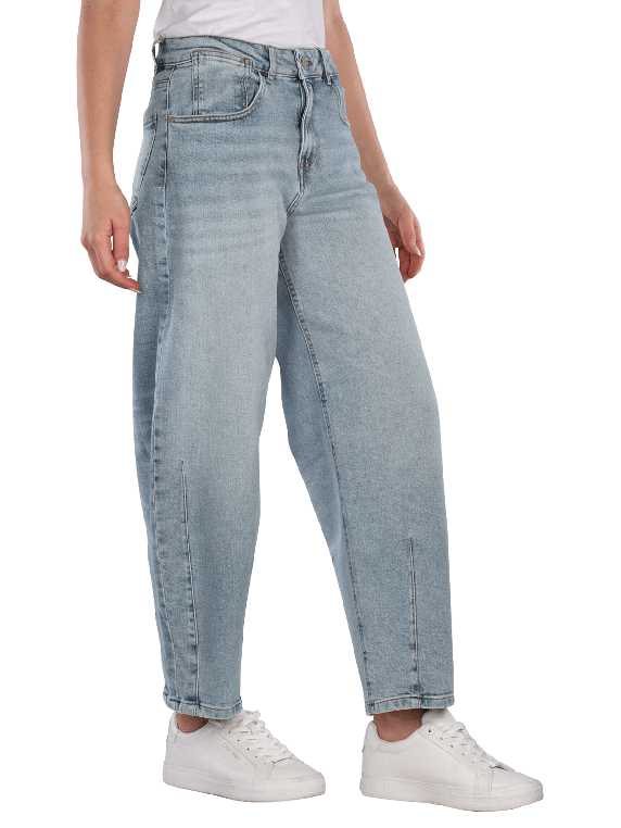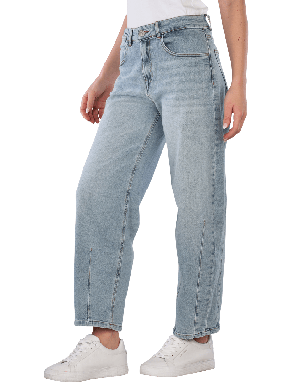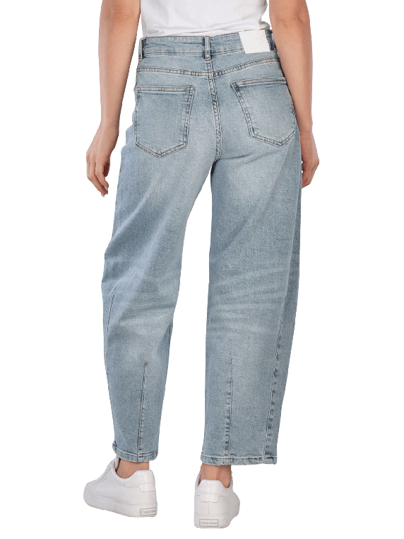 The Opus Lissie Bold Jeans in Barrel Fit offer a straight leg opening and a mid-rise waist. The light blue wash provides a fresh look. With a stretch content, they fit comfortably to the body. The five-pocket design allows for practical storage. These jeans are suitable for normal wash at 30°C and offer a comfortable fit for everyday wear.