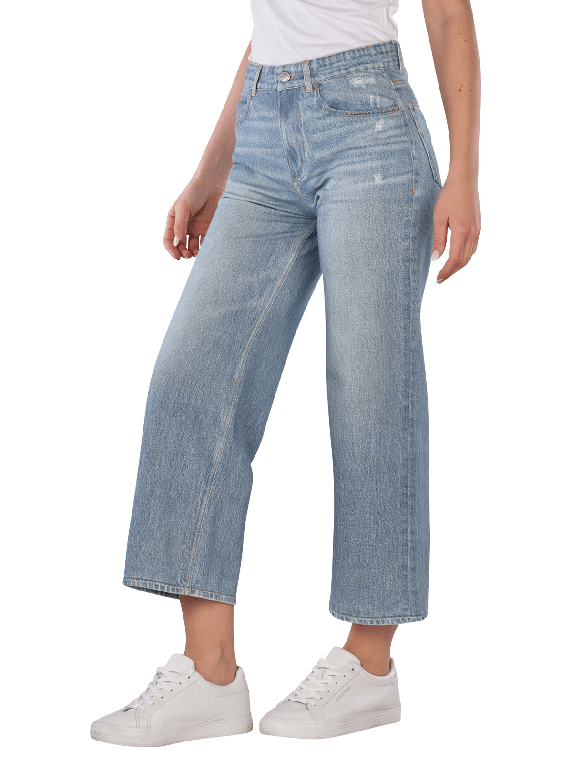 The Opus Pants Calina Cruise Jeans feature a wide leg opening and a mid-rise waist. The light blue color and five-pocket design make them versatile to combine. These jeans are made from 100% cotton and have a thin fabric thickness, making them comfortable to wear. They are suitable for a gentle wash at 30°C and offer a comfortable fit for various occasions.