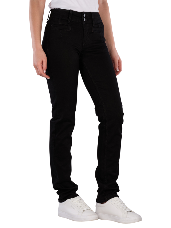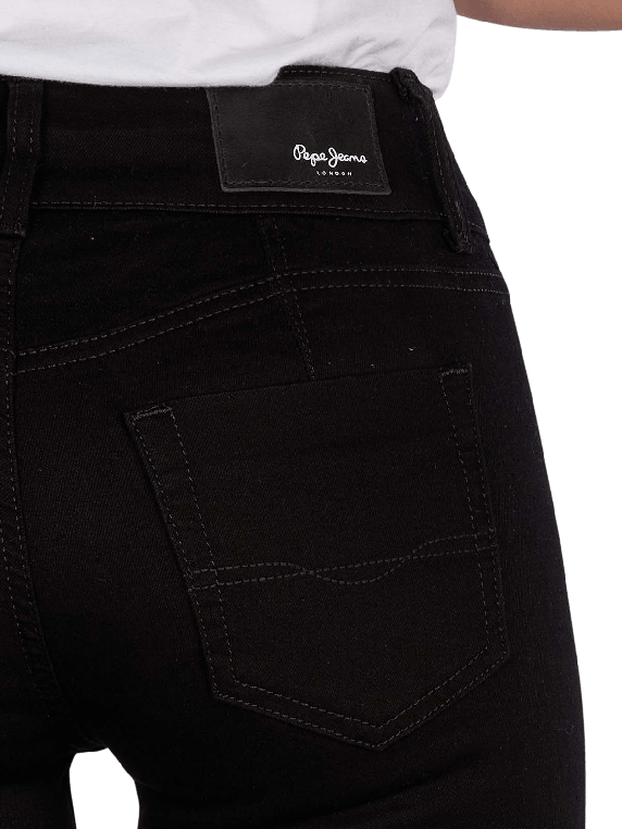 The Pepe Jeans Contour Beryl Straight Fit in black offers a straight fit with a mid-rise waist. It features a classic five-pocket style and a zipper. The stretch content provides freedom of movement and comfort. These jeans are suitable for a normal wash at 40°C and retain their shape even after multiple washes. They are a versatile choice for various occasions.