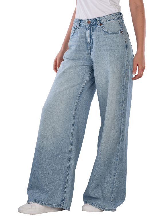 The Pepe Jeans Jaimy Wide Leg Light Blue offers a high waist and a wide leg cut for a casual look, the light wash provides a fresh style while the zipper offers a practical closure, this pants is designed for women and is perfect for relaxed leisure activities, it can be combined in various ways and offers high wearing comfort due to the thin fabric.
