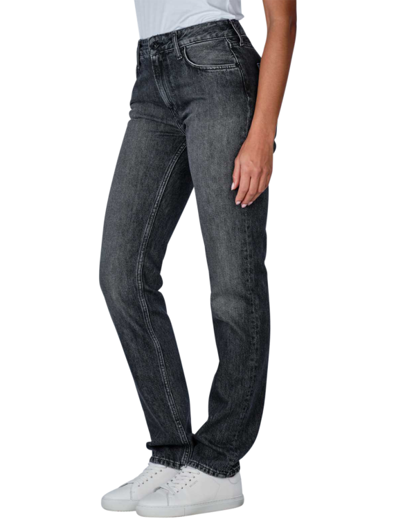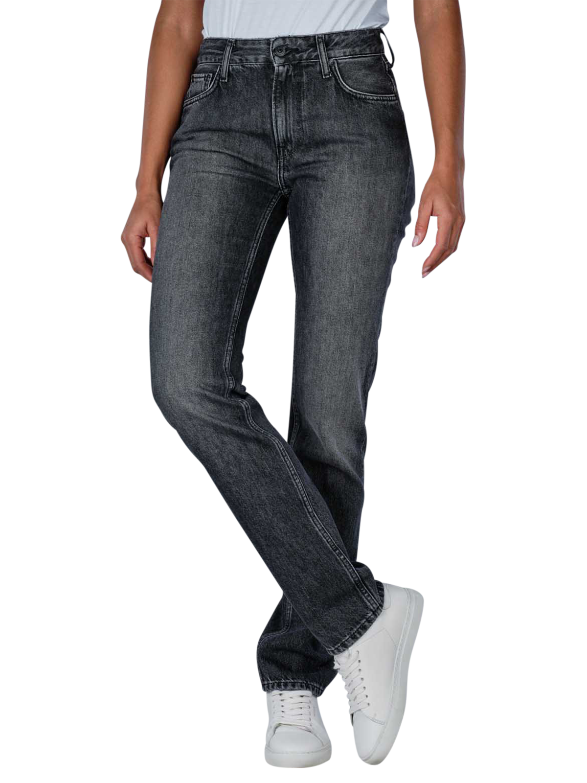 The Pepe Jeans Mary Mid Straight Fit are stylish women's jeans in black. These straight-cut trousers feature a classic five-pocket style and a comfortable mid-rise waistband. Made from 82% cotton and 18% lyocell, they offer a standard fabric thickness without stretch. The zip fastening makes them easy to put on. The black wash gives the jeans a timeless look. Easy care at 40°C on a normal wash cycle, do not bleach. Ideal for fashionable women.