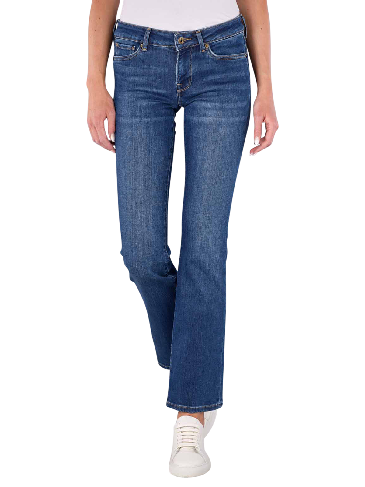 The Pepe Jeans Low Piccadilly Bootcut in medium blue are ideal for women. They have a wide leg cut, a low waistband and are made from 83% cotton, 12% modal, 4% T400 and 1% Lycra. With their medium wash and five-pocket design, they are fashionable and comfortable. The zip fastening ensures a secure fit. Suitable for the normal wash cycle at 30°C and non-bleach, these jeans are versatile and easy to care for.