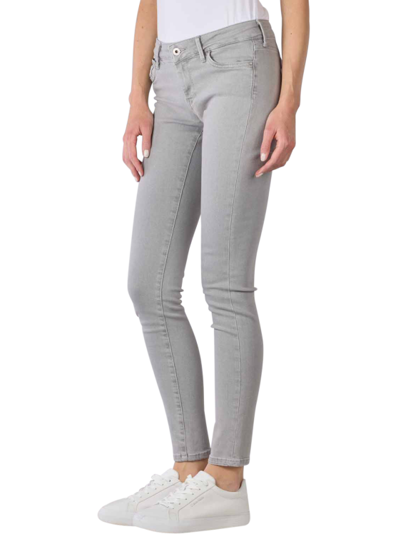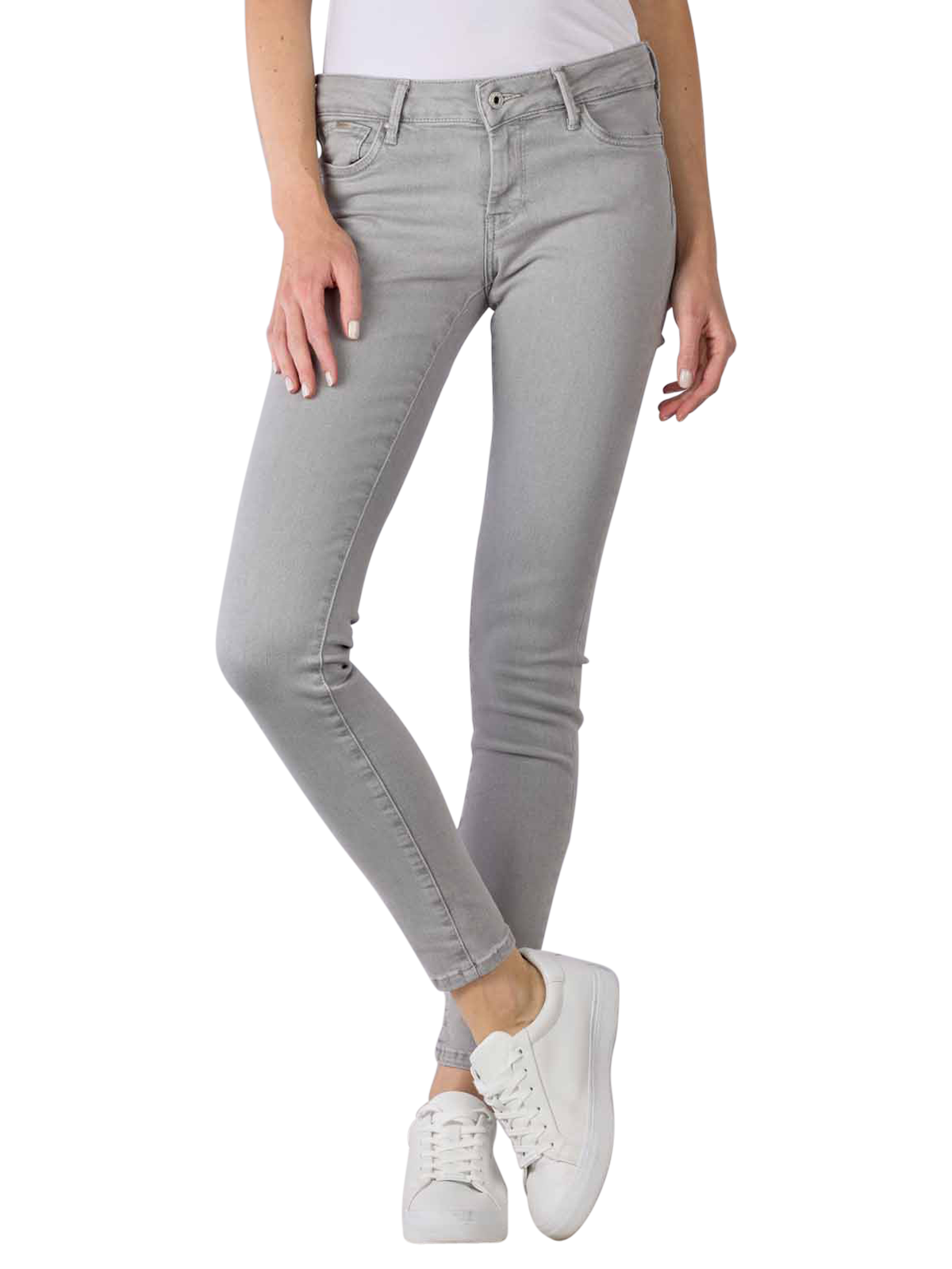 The Pepe Jeans Pixie Skinny Fit in blue is a modern pair of 5-pocket women's jeans with a mid-rise waist and a very narrow leg that accentuates the feminine silhouette. The jeans are made from a stretchy organic cotton blend, which makes them very comfortable despite their slim fit. Washable at 30 °C and suitable for tumble drying at low temperatures, these women's jeans are easy to clean.