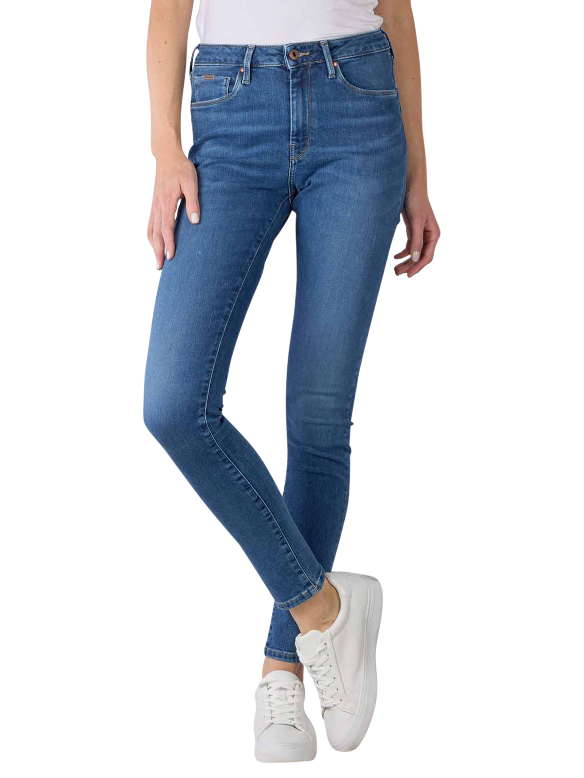 The Pepe Jeans Regent High Skinny in dark blue is made from a highly stretchy denim fabric made from recycled materials and comes in a classic 5-pocket style. With their high waist and very tight silhouette, they perfectly emphasise feminine curves and are also very comfortable to wear. Washable at 40 °C, these modern women's jeans are also easy to clean.