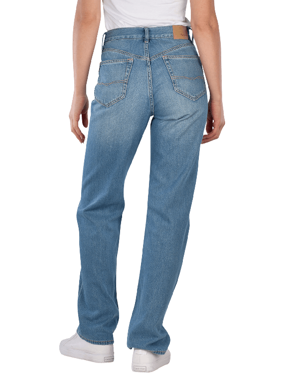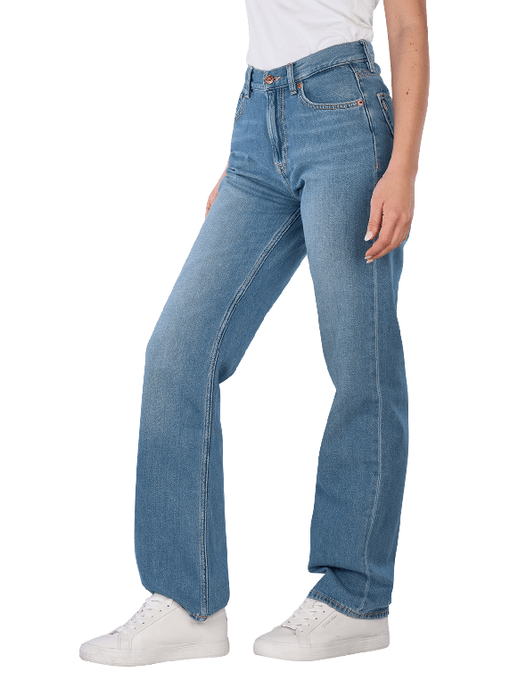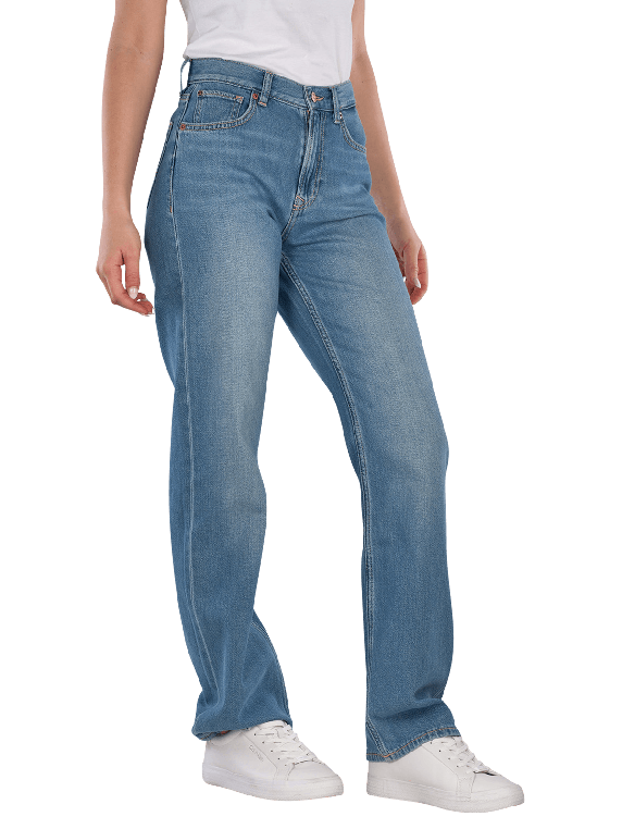 The Pepe Jeans Robyn Straight Fit in medium blue offers a straight fit with a high waist. It features a classic five-pocket style and a zipper. The jeans are made from a thin, standard-weight fabric and are suitable for various occasions. The medium wash provides a timeless look, while the care instructions recommend easy cleaning at 30°C in a normal wash cycle.