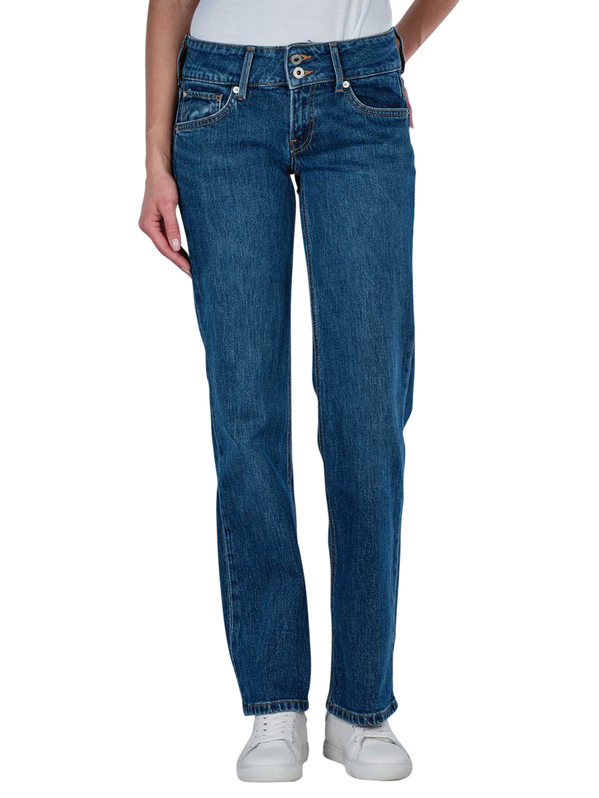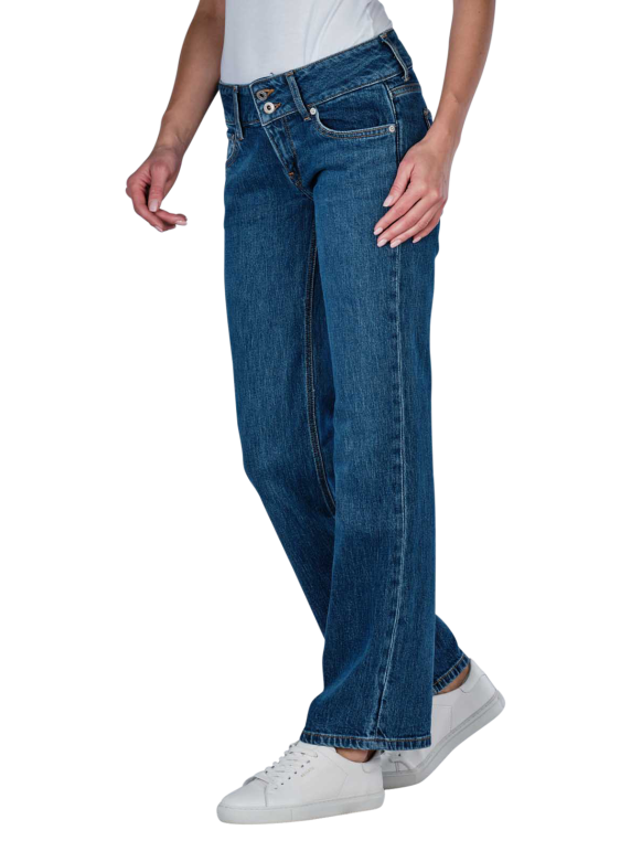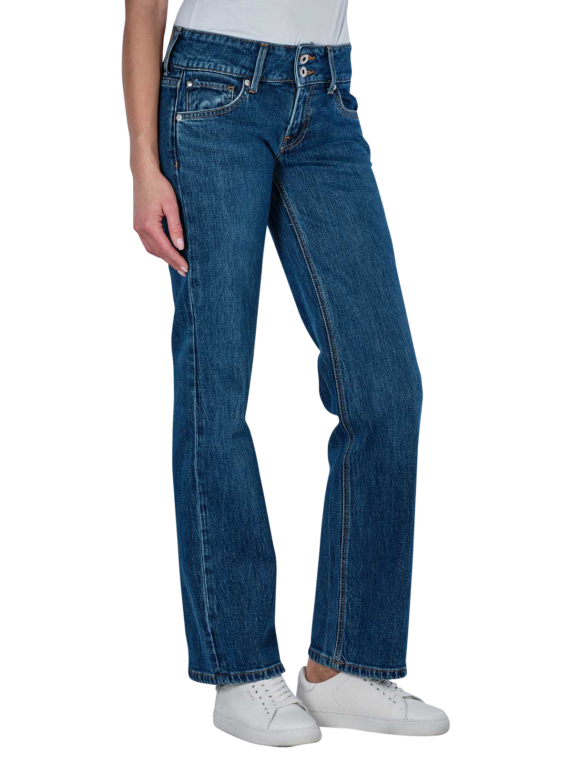 The Pepe Jeans Venus for women come in an elegant dark blue colour with a straight leg cut and a low waist. These straight fit jeans are characterised by their standard fabric thickness and comfortable stretch. The classic five-pocket style is complemented by a practical zip fastening. Made from 99% cotton and 1% elastane, they are easy to care for at 40°C on a normal wash cycle without bleaching. Perfect for everyday wear.