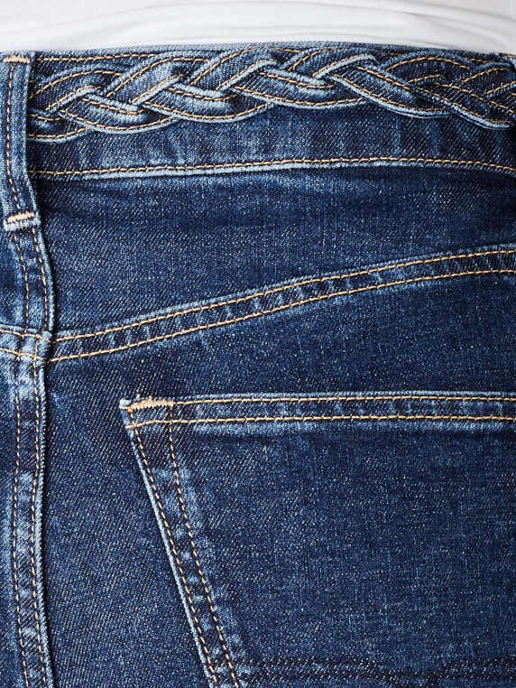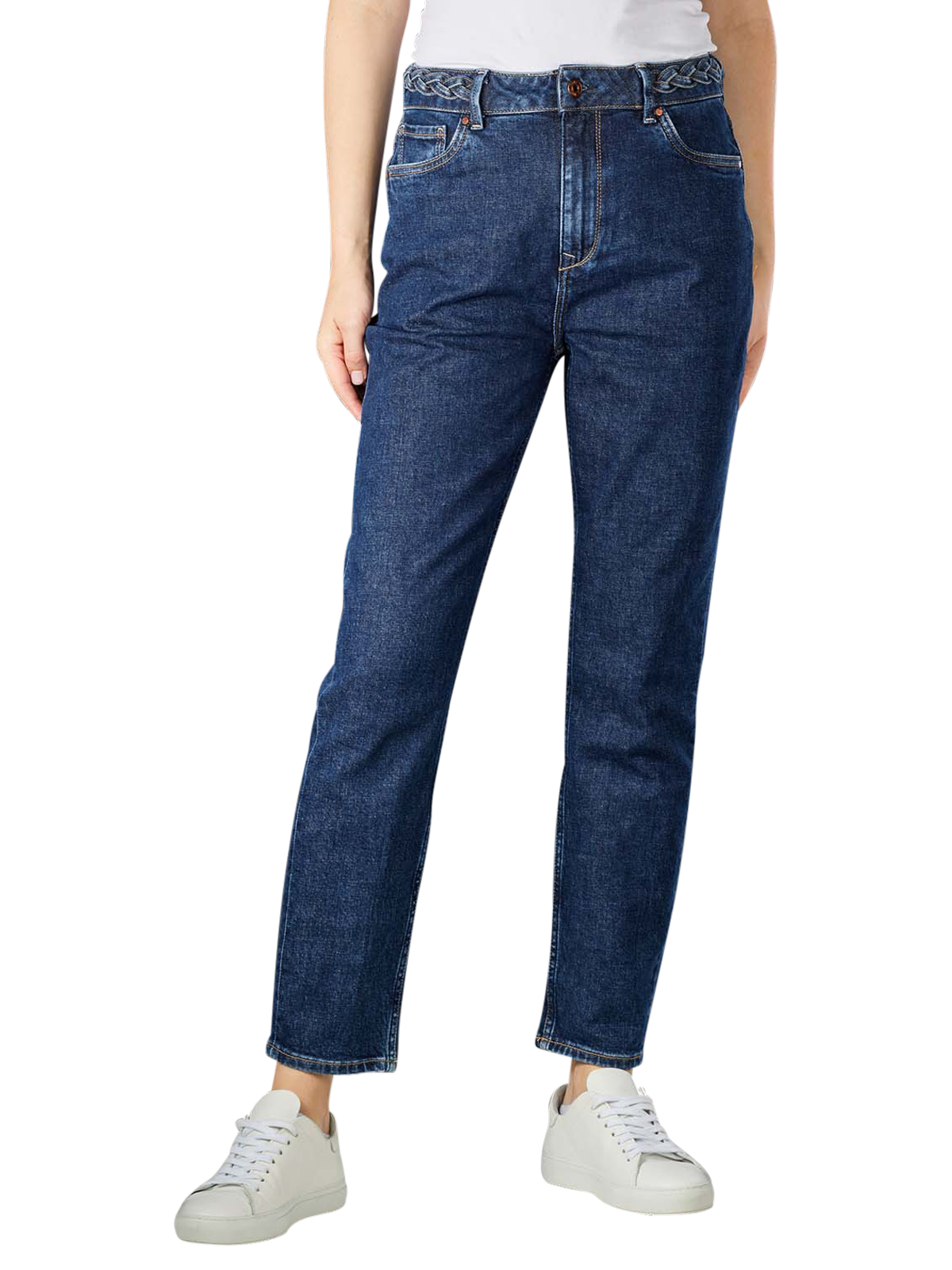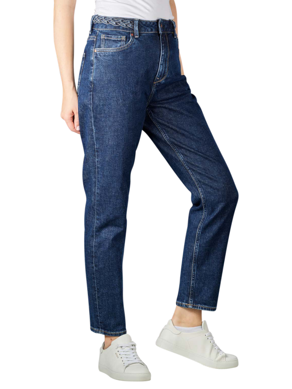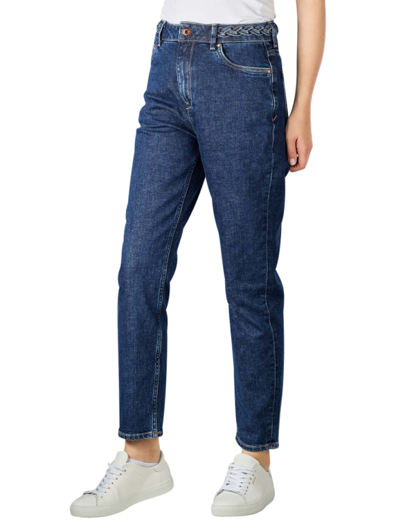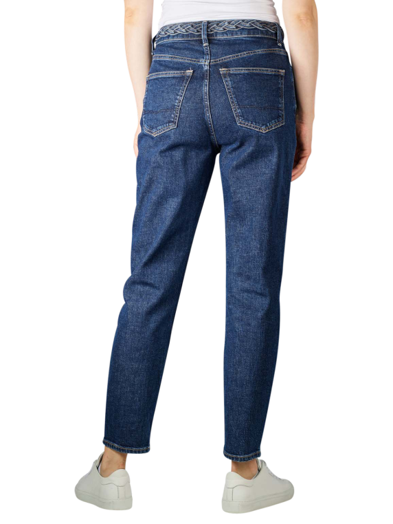 The Pepe Jeans Violet High Braid Jeans in the color Dark Blue are a fit Mom Fit, emphasizing the hips and buttocks. A high waistband and braided belt detail complete the design. The five-pocket jeans for women with a straight leg is made of pure cotton with a good stretch content.