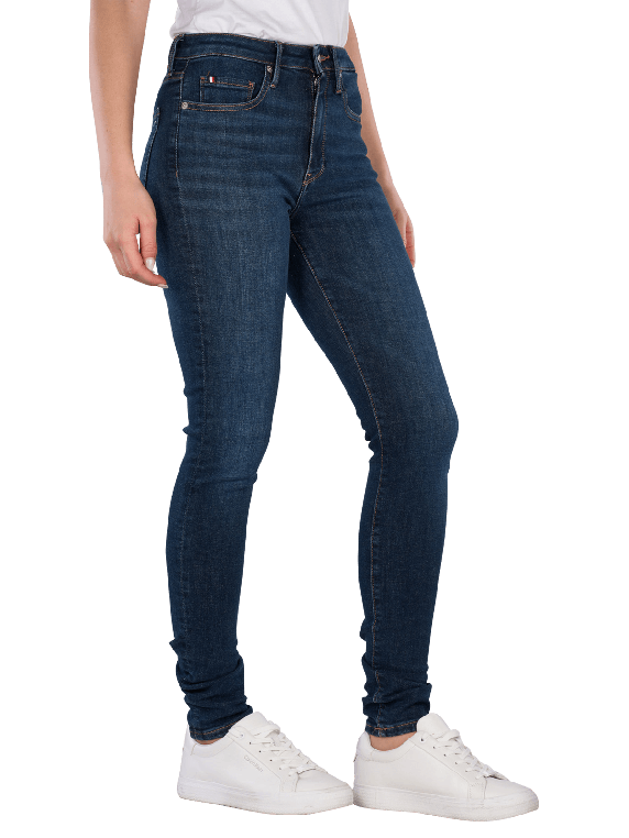 The Tommy Hilfiger Como Jeans Skinny Fit in dark blue offers a tight fit with a mid-rise waist. It features a classic five-pocket style and a zipper. The stretch content provides freedom of movement and comfort. These jeans are suitable for various occasions and can be combined in many ways. Care instructions: gentle wash at 30°C, do not bleach. A timeless piece of clothing for the modern woman.