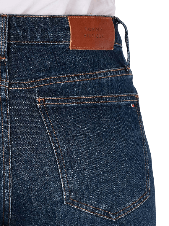 The Tommy Hilfiger Jeans Bootcut Dark Blue features a straight leg cut and a mid-rise waist. It is in a medium blue color and has a five-pocket construction. The zipper ensures a secure fit. With a stretch content, the jeans adapt to the body shape and provide comfort. The medium wash gives it a timeless look that is versatile to combine.