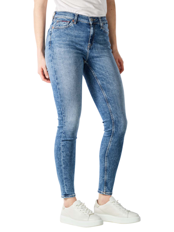 The Tommy Jeans Nora Jeans Skinny Fit in denim medium is a casual five-pocket jeans with a medium waist and slim-fitting legs. The stretch content ensures a comfortable fit and an optimal fit - these jeans with a used look follow every movement without any problems. Tommy Hilfiger takes strict ecological standards into account during production, so the company makes a valuable contribution to environmental protection.
