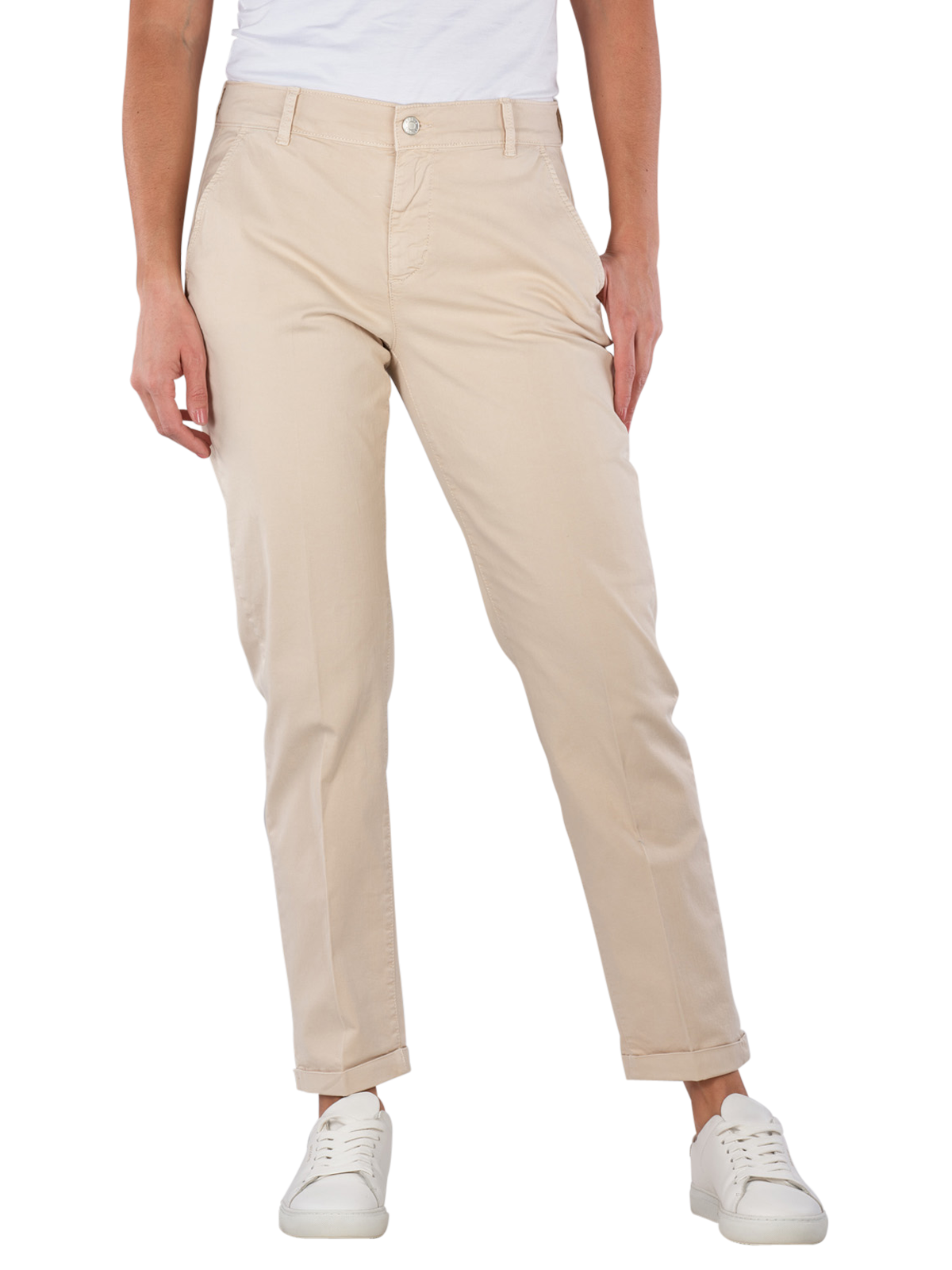 Discover the Angels Clara Chino Summer Cotton Light in elegant beige - the perfect trousers for warm days! These women's chinos impress with their straight leg cut and comfortable mid-rise waistband. The thin, stretchy fabric makes them comfortable to wear and ensures optimum freedom of movement. With their stylish 7/8 cut, they are ideal for both casual and smart occasions. Simply wash on a normal wash cycle at 40°C to keep them fresh!