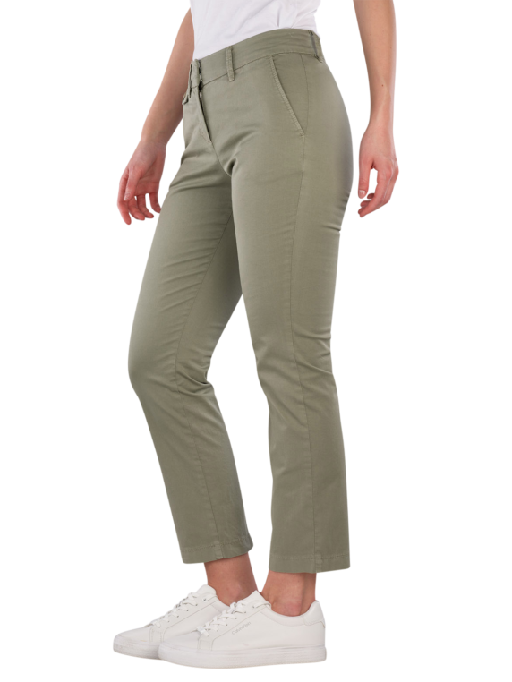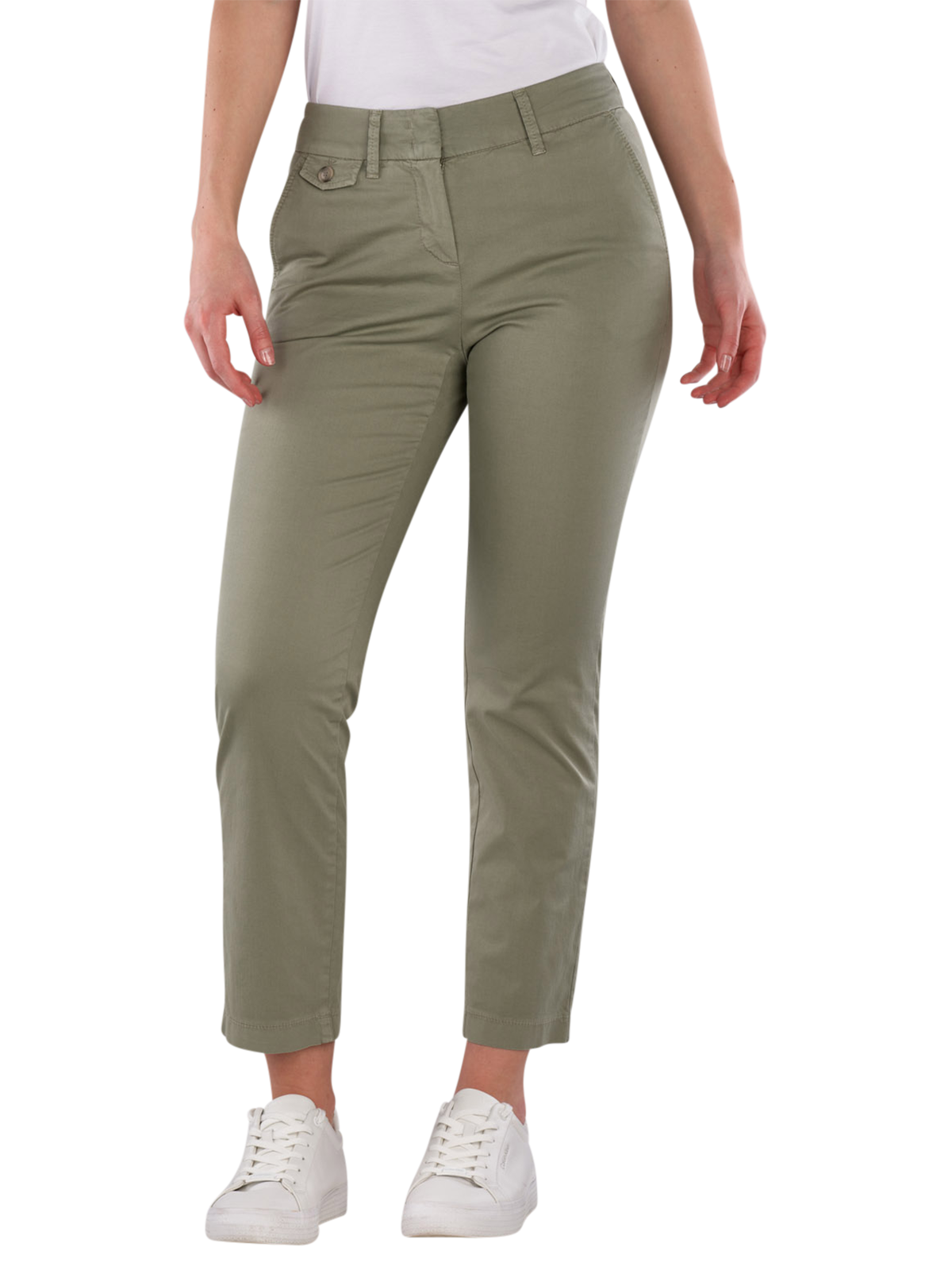 The Gardeur Denise-15 Chino in Light Khaki offers a straight fit with a low to medium waistband. This 7/8 pant combines a modern cut with a thin, stretchy fabric that allows freedom of movement. The zipper ensures a secure fit. It is suitable for various occasions and can be combined in many ways. Easy to care for at 30°C on a gentle wash cycle.