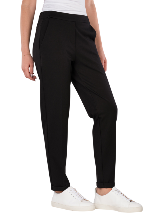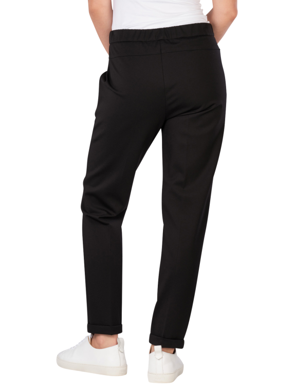 The Mac Cami Chino Slim Fit Light Jersey in black offers a slim fit with a mid-rise waistband, the elastic waistband ensures a comfortable fit while the stretch content allows for freedom of movement, this chino is versatile for casual activities to relaxed meetings, it can be easily cleaned at 30°C on a gentle cycle and is a practical choice for fashion-conscious women.
