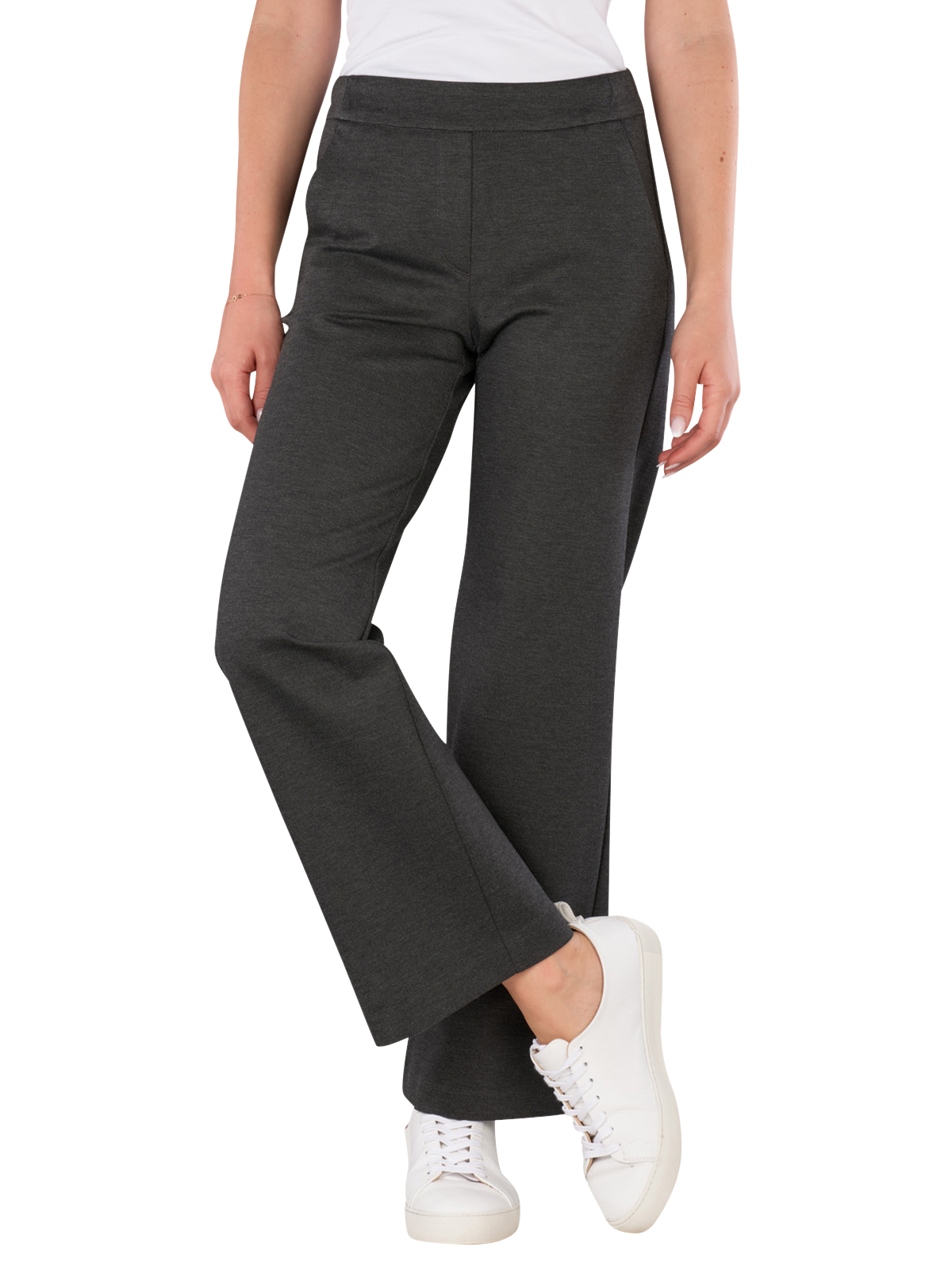 The Mac Chiara Chino Wide Leg Shadow Melange features a wide leg opening and a medium rise. This classic fabric trouser for women combines a straight fit with a stretch content for high wearing comfort. The elastic waistband ensures a comfortable fit. It is suitable for various occasions and can be combined in many ways. Easy to care for in a gentle wash cycle at 30°C, it is a practical choice for everyday wear.
