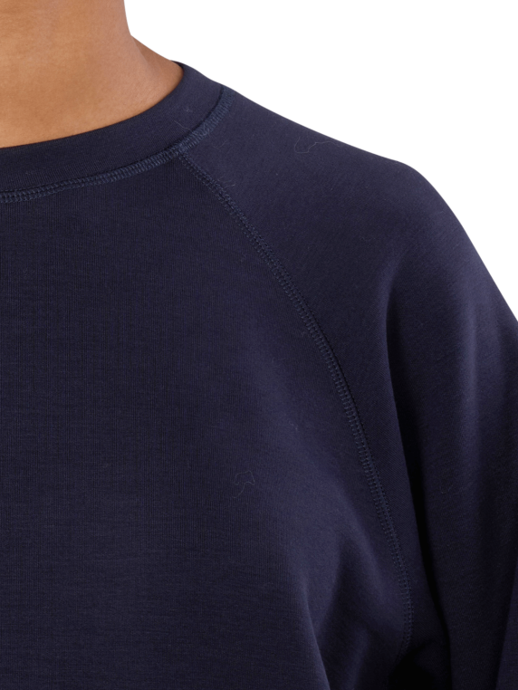 Discover the Mosh Mosh Basic Abello sweatshirt in the elegant colour Salute Navy. This dark blue sweatshirt impresses with its classic round neck collar and offers optimum comfort. Made from a high-quality blend of 80% viscose, 13% polyester and 7% elastane, it feels pleasant against the skin. Ideal for relaxed days or casual occasions, the sweatshirt can be combined in a variety of ways. Easy to care for on a gentle wash cycle at 30°C. A must-have for every wardrobe!