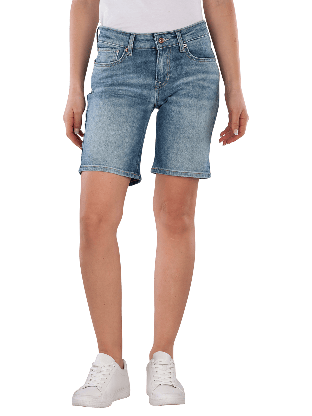 The Pepe Jeans Poppy Shorts Slim Fit in Medium Blue offer a comfortable fit with stretch for optimal freedom of movement. The zipper allows for easy on and off. These denim shorts are versatile and suitable for various leisure activities. They are easy to care for and can be washed at 40°C, making handling easier.