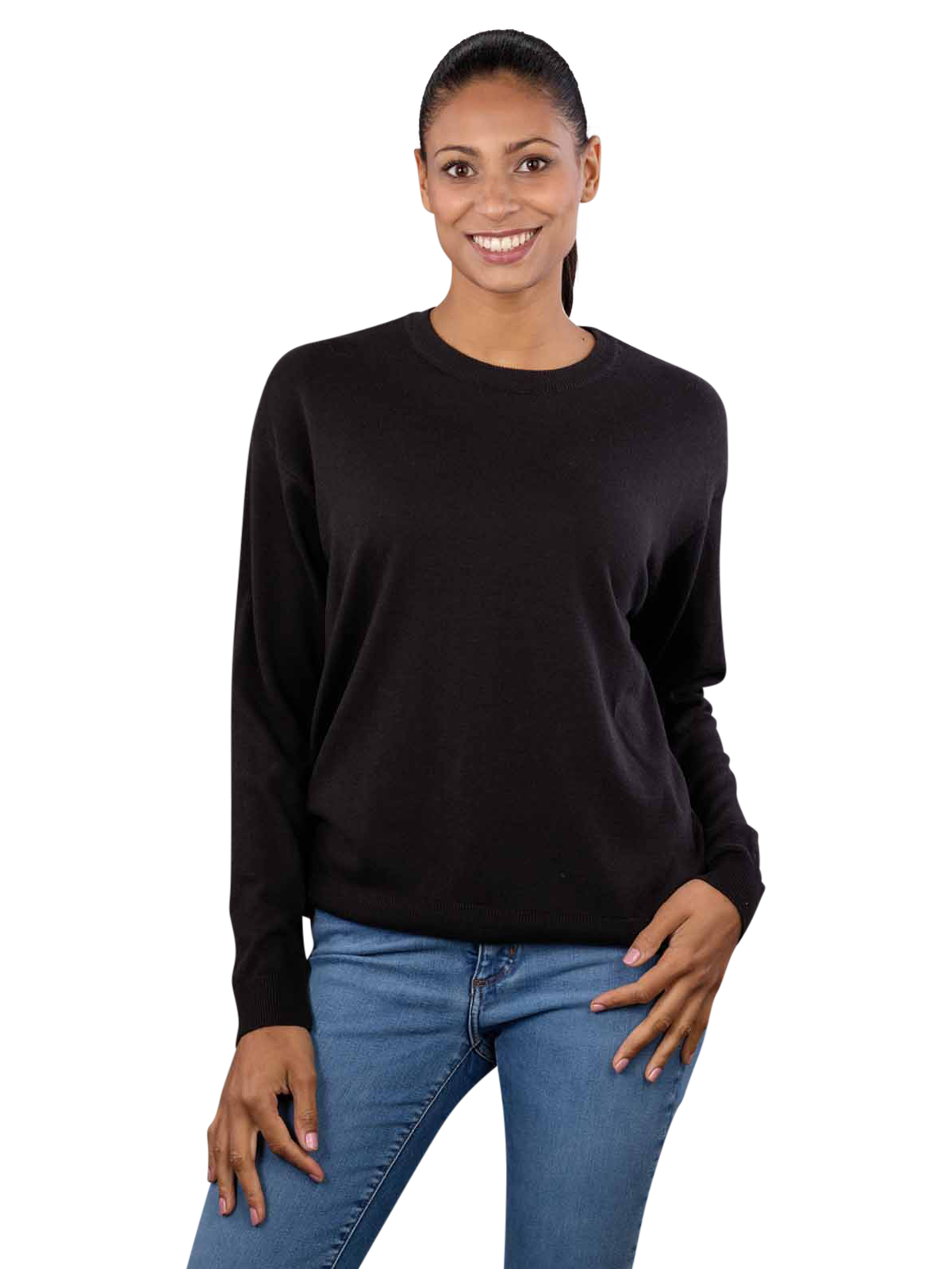 The Armedangels Lailaa jumper in black is a stylish and comfortable round neck jumper for women. It is made from an eco-friendly blend of 50% cotton and 50% lyocell, which makes it particularly soft and breathable. The care instructions recommend hand washing and avoiding bleach. This elegantly simple jumper is the ideal choice for eco-conscious fashion lovers who value comfort and sustainability.
