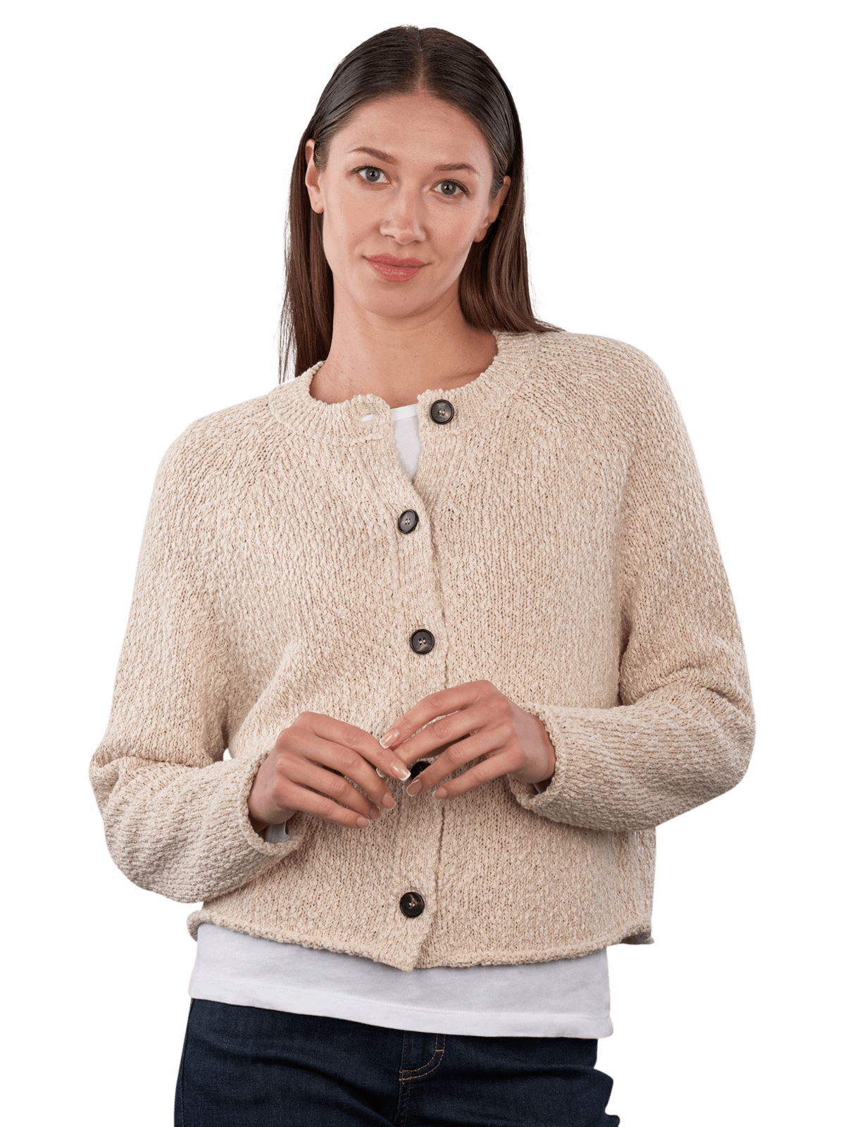 The Marc O'Polo Cardigan Long Sleeve Round Neck in Beige offers a comfortable fit and a classic round neckline. Made from a blend of 75% cotton and 25% polyester, it is easy to care for and suitable for hand washing. This cardigan is perfect for layering over tops or blouses and provides a stylish addition to your wardrobe.