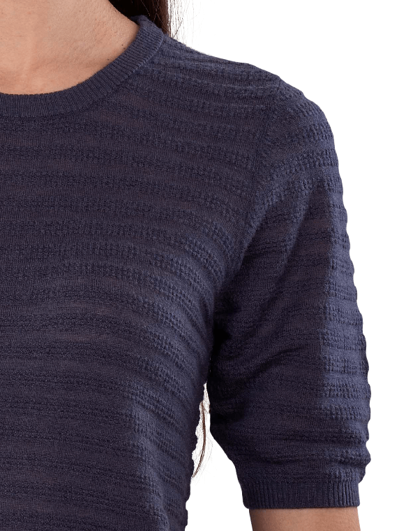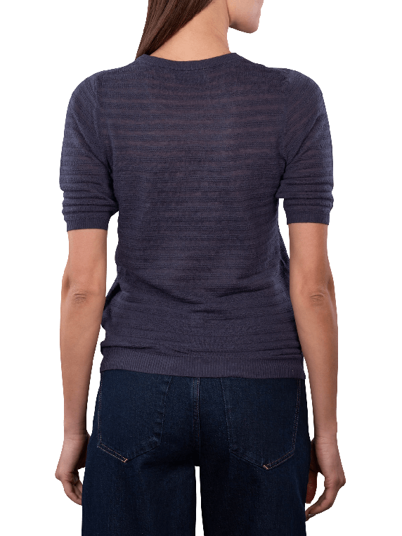 The Mos Mosh Bouch Dotty Pullover in Dark Blue features a round neckline and short sleeves. It is made from 100% wool and meets the Responsible Wool Standard (RWS). This pullover is suitable for various occasions and can be combined in many ways. Hand washing ensures easy care, while the simple elegance of the design guarantees a timeless look.