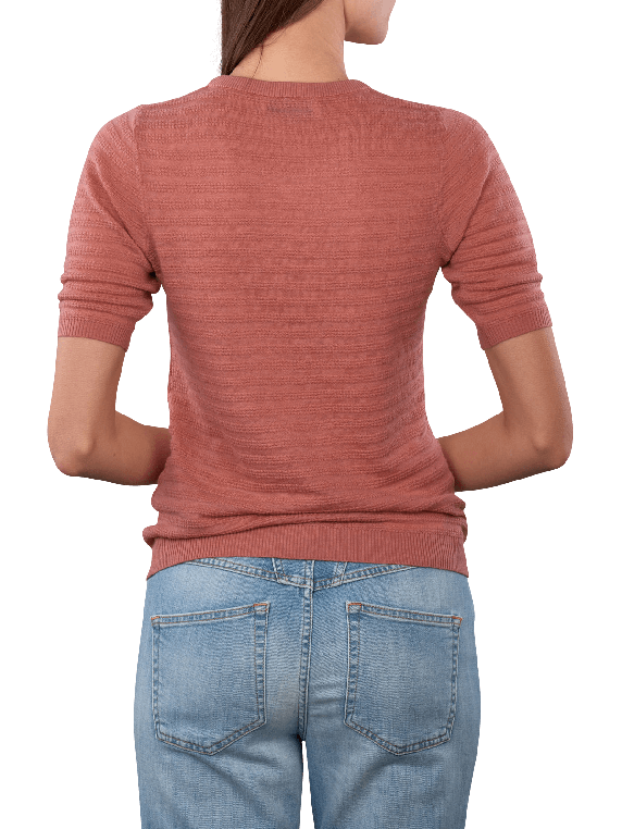 The Mos Mosh Bouch Dotty Pullover in Dusty Rose features a round neckline and short sleeves. It is made from 100% wool and meets the Responsible Wool Standard (RWS). This pullover is suitable for various occasions and can be combined in many ways. Hand washing ensures easy care, while the soft wool provides comfort and warmth.