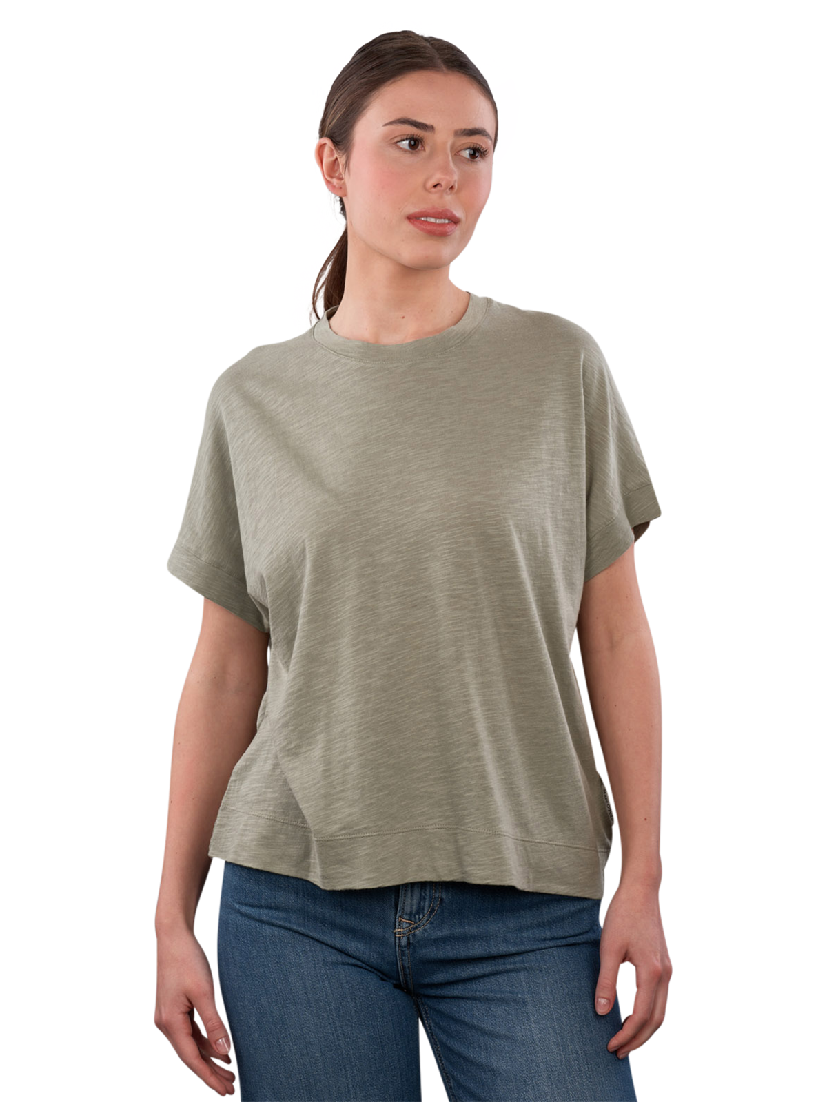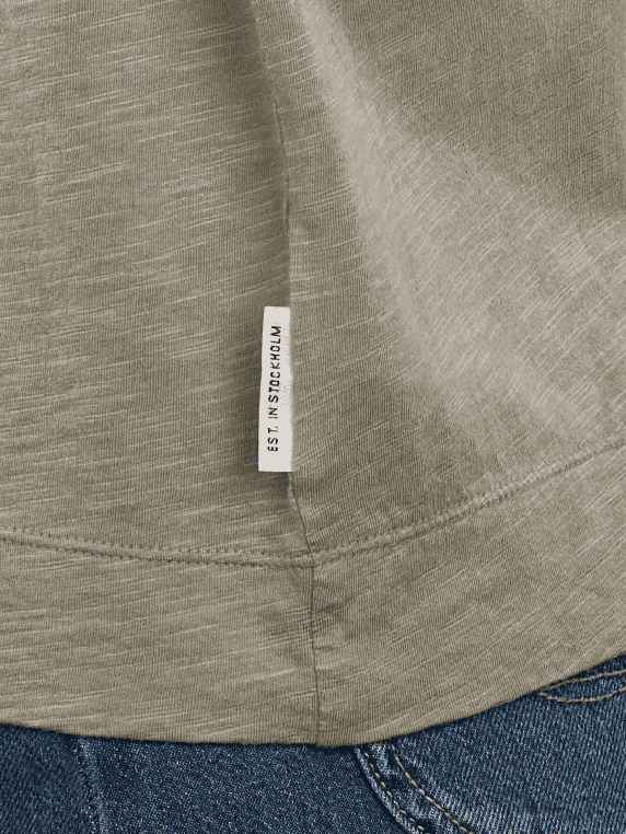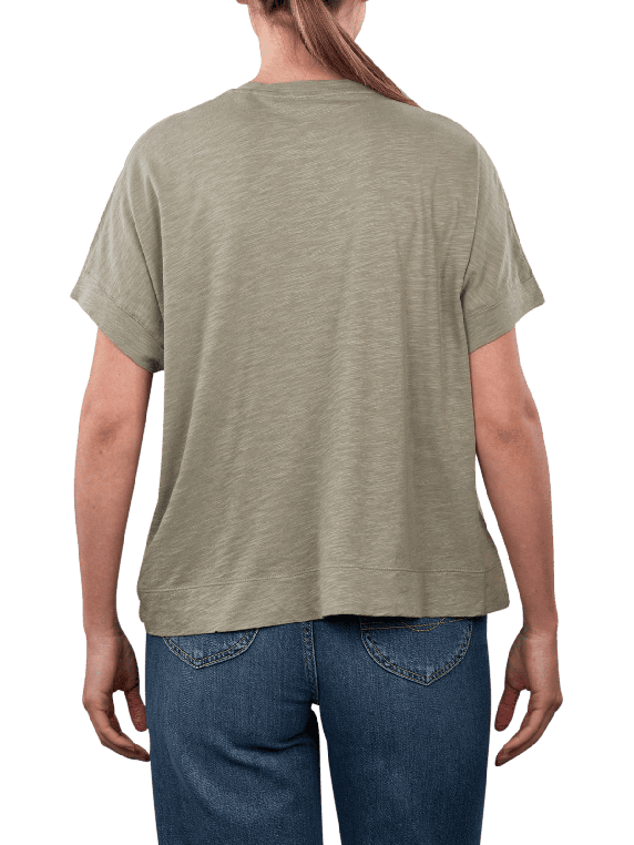 The Marc O'Polo short sleeve T-shirt in the color Fresh Sage features a round neckline and is made from a blend of organic cotton and viscose, suitable for everyday wear and versatile combinations, with care instructions recommending a gentle wash at 30°C and no bleaching, this T-shirt combines comfort and style, ideal for relaxed leisure activities.