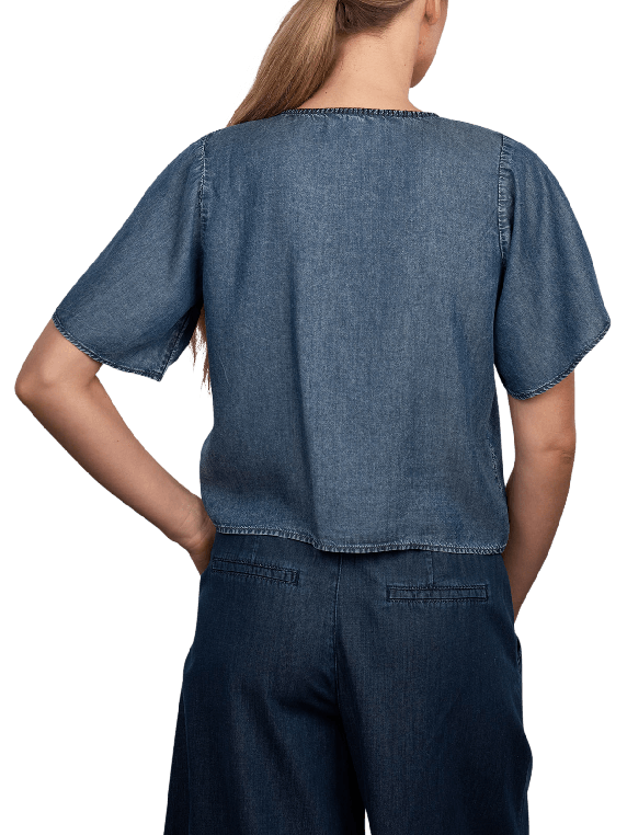 La chemise Pepe Jeans Cleo en Tencel bleu foncé offre un décolleté en V et est fabriquée en 100 % lyocell. Elle convient à diverses occasions et se combine facilement. Les instructions d'entretien recommandent un lavage délicat à 30 °C et de ne pas utiliser de javel. Cette chemise allie confort et style, ce qui en fait un ajout pratique à la garde-robe de chaque femme.